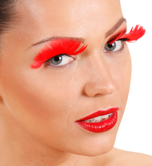 Eyelashes with red feathers for carnival These elegant eyelashes with red feathers are for carnival and other parties where you are looking for special party accessories. On this site you will find many more party clothes and crazy carnival items....