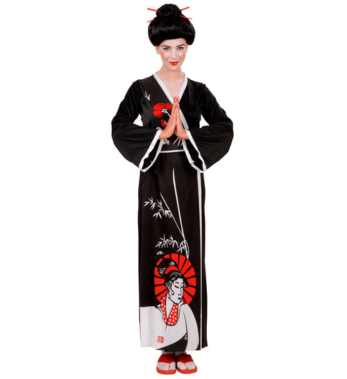 Japanese Kimono Costume Akiko Beautiful Japanese kimono suit Akiko for a Japanese theme party. In this Japanese series you can also order a children's suit. The Japanese outfit kimono Akiko includes: Kimono with belt