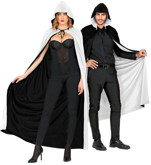Beautiful double-sided cape with hood. This double-sided cape is of high quality. Both the white and the black can be worn on the outside. Whatever color you want, you can change the color of your double-sided cape in no time....