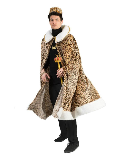 King's mantle or cape for the African king of Swaziland Beautiful African king's cloak in leopard print. The collar and the bottom of the cloak are provided with a white fake fur. The hat can be ordered separately.