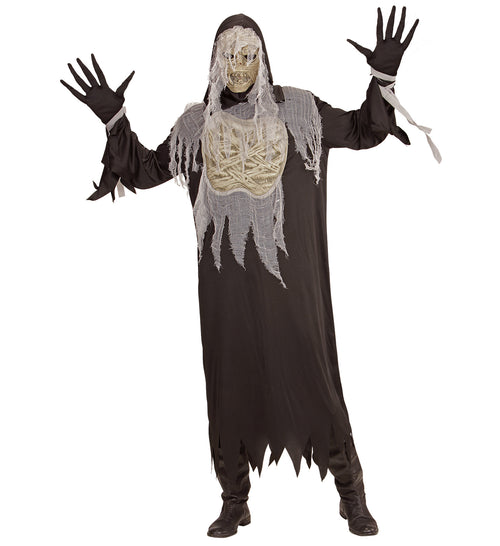 Transform into a mysterious mummy with this black men's costume! Perfect for Halloween or theme parties. Do you dare? Features Available in sizes S, M, L, XL Comfortable fit Unique and striking design Become a legend! Step into the spotlight...