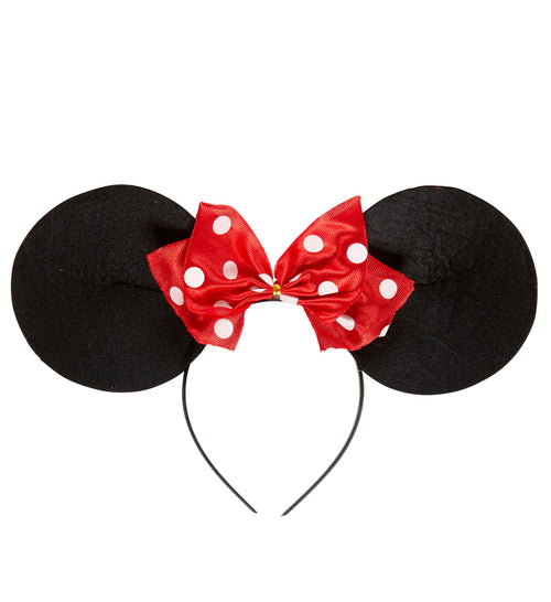Headband for Minnie Mouse Tiara for Minnie Mouse with black ears that are trimmed with sequins and a beautiful colored red bow. The hairband fits perfectly with your Minnie Mouse outfit for carnival or another fun party.