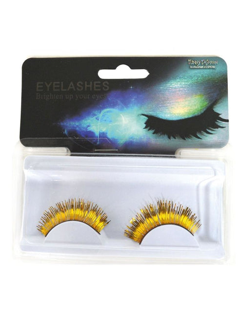 Let your eyes shine with these golden false eyelashes! Perfect for a glamorous carnival look. Glue included, so you're ready to party! Features Golden color Including glue Easy to apply Change your look! Add a touch of glamour to your...
