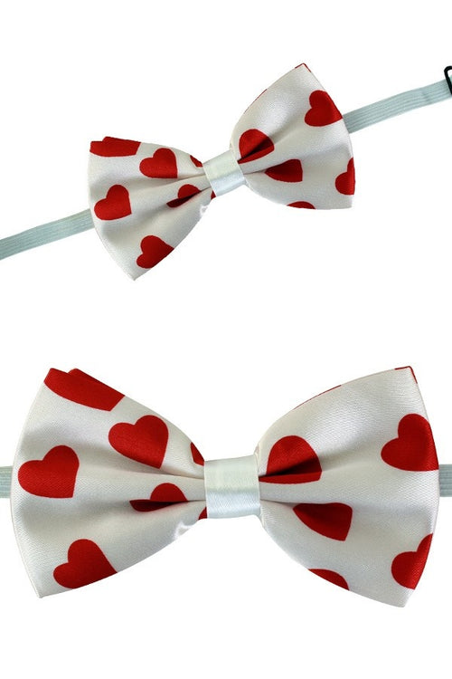White bow with red hearts for party wear Bow tie white with red hearts for your carnival party clothing These beautiful nondejukes fit nicely with your carnival suit or carnival costume from the party store. Nice bows that fit with...
