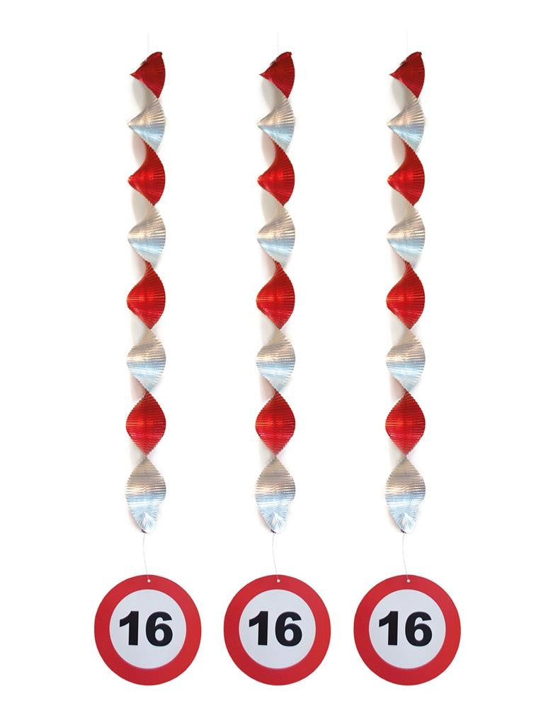 Set of three fun hanging decorations Sweet 16 decoration with traffic signs on it. Length approximately 81cm. Read more