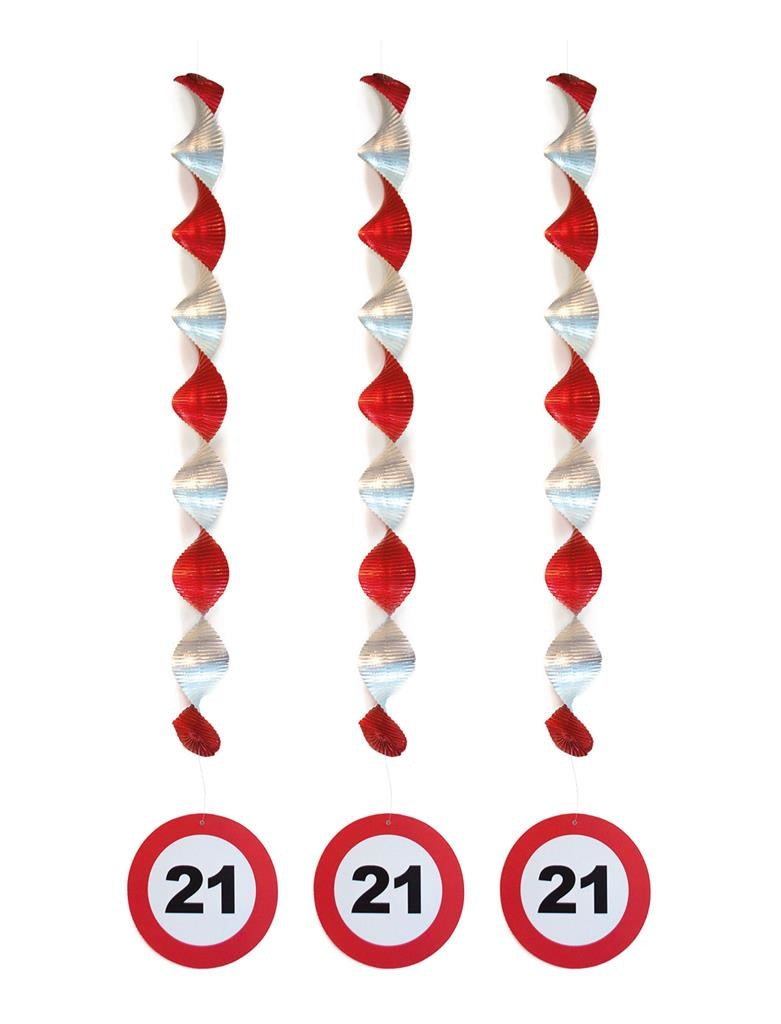 Set of three fun hanging decorations 21 years decoration with traffic signs on it. Length about 81cm. Read more
