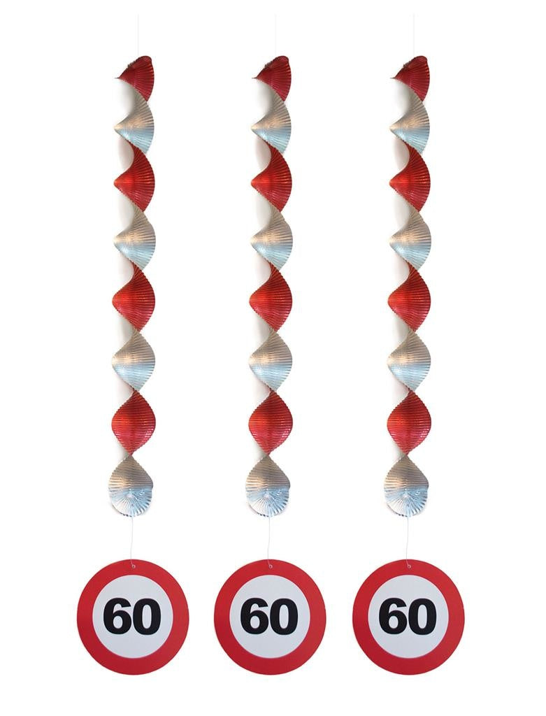 Set of three nice hanging decorations 60 years decoration with traffic signs on it. Length about 81cm Read more