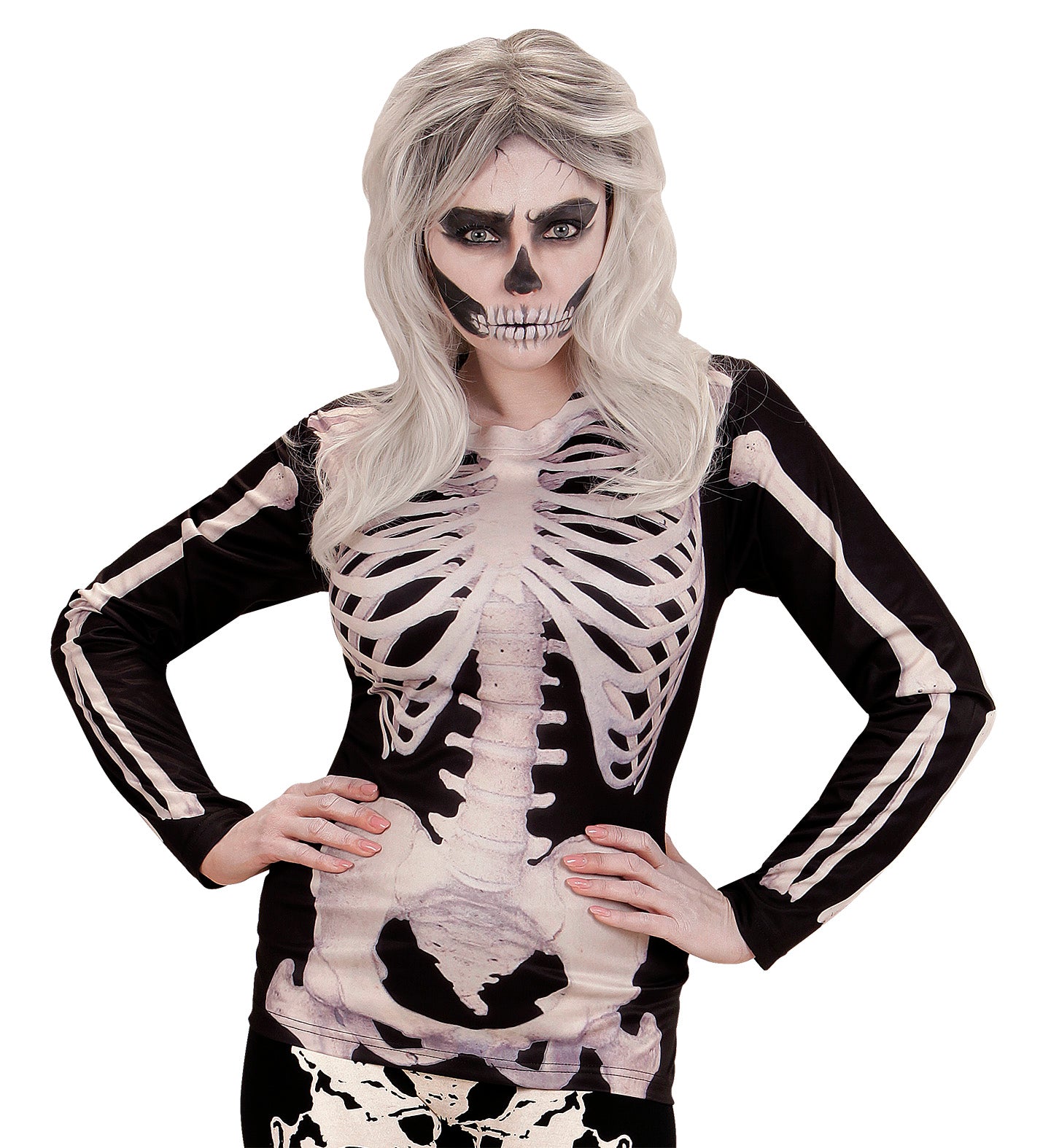 Creepy skeleton costume for women includes the t-shirt with long sleeves Read more