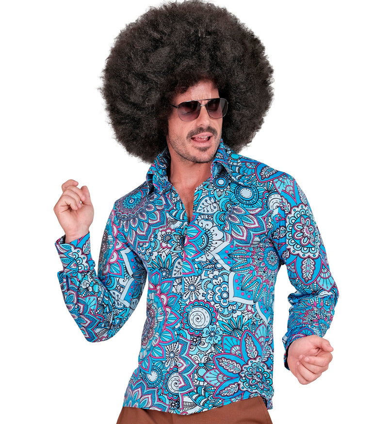 1970s shirt mandala blue men