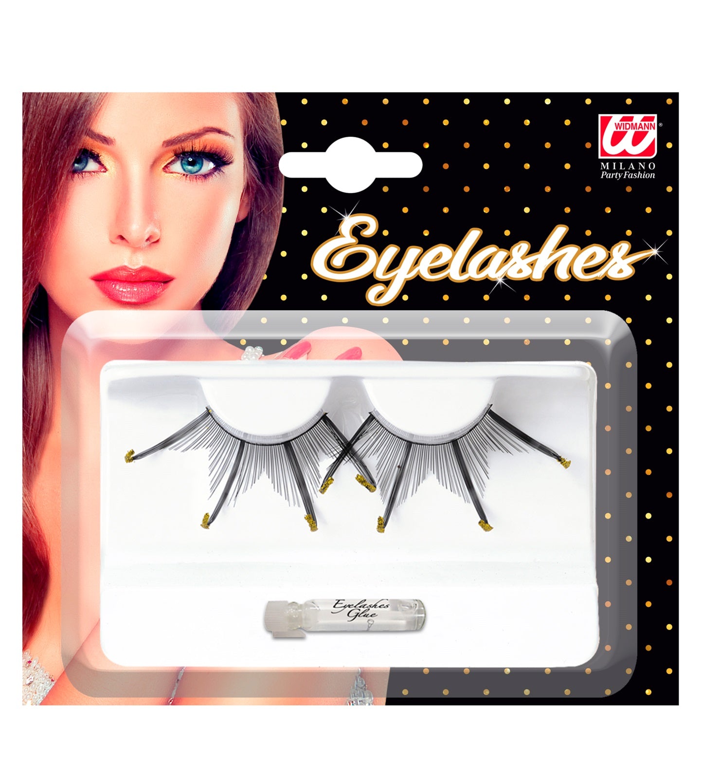 Fake eyelashes black long gold points