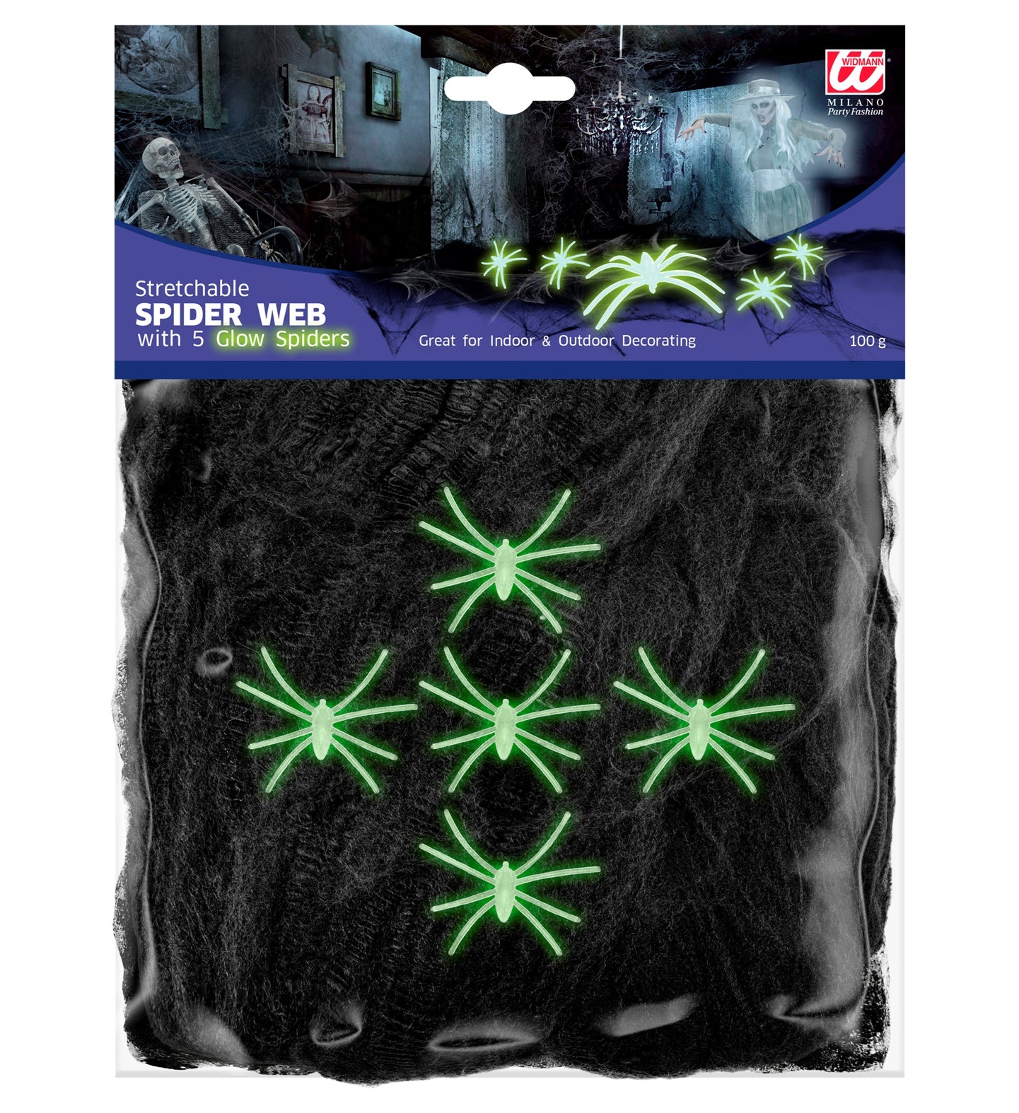 Spider web black 100 grams 5 spiders