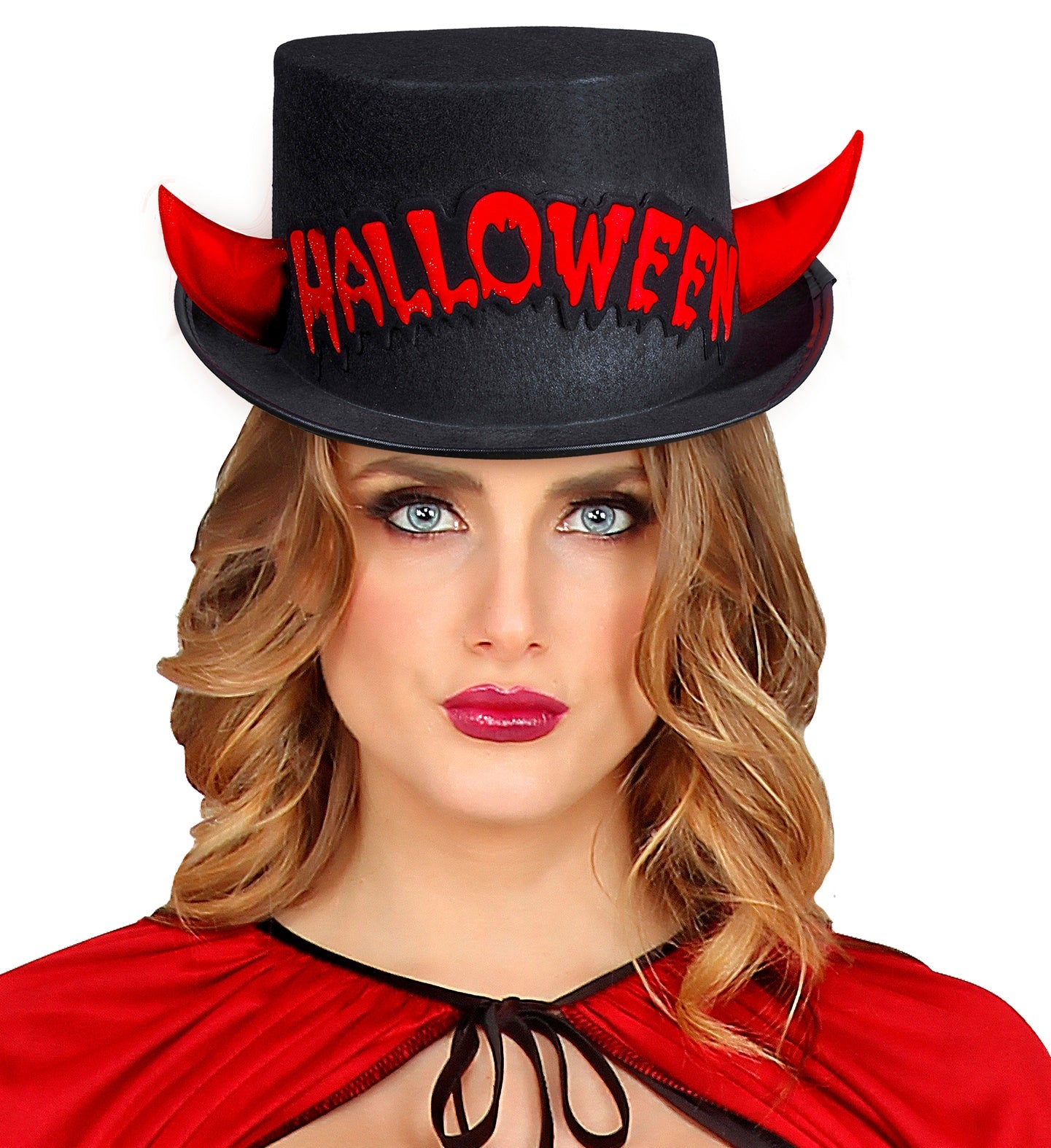 Black top hat Halloween with devil horns