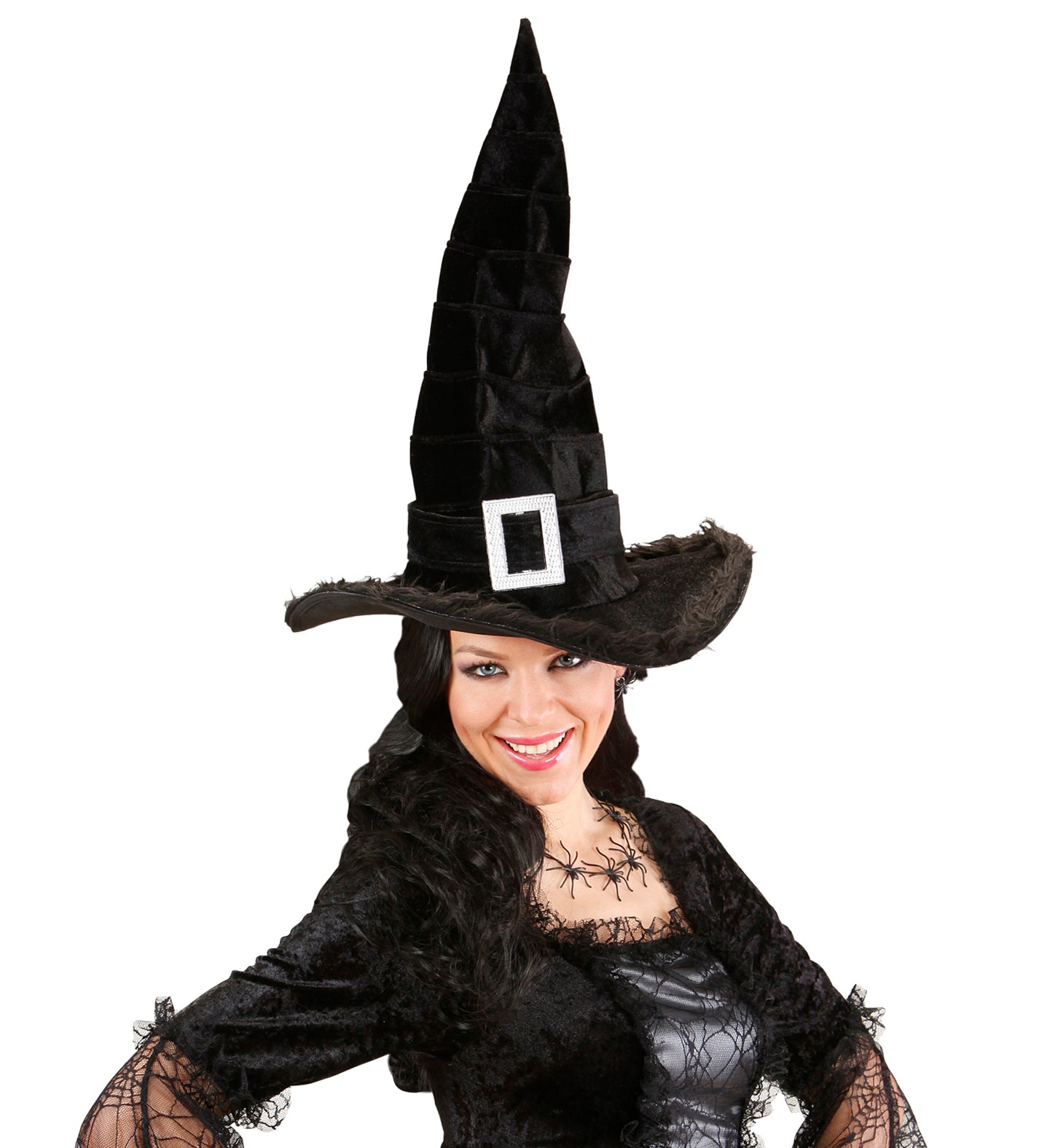Complete your Halloween or carnival outfit with this beautiful black velvet witch hat! This witch hat is not only a must-have for every witch, but also for anyone who wants to add a little magic to his or her costume. With an elegant design and a timeless look, you will feel like the star of the party!