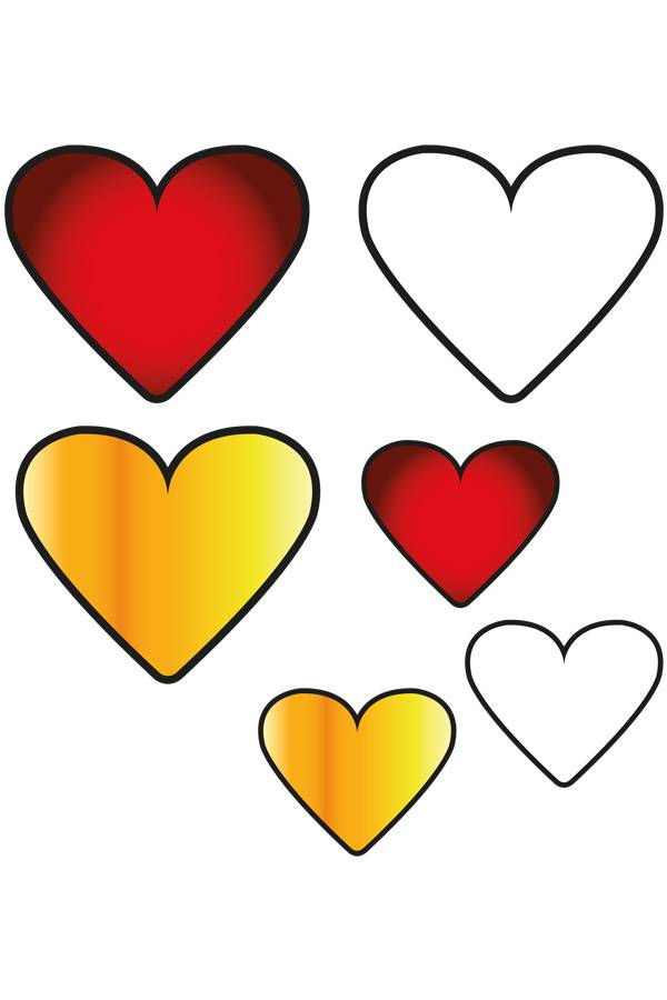Appliques 6 pcs hearts on card Oeteldonk