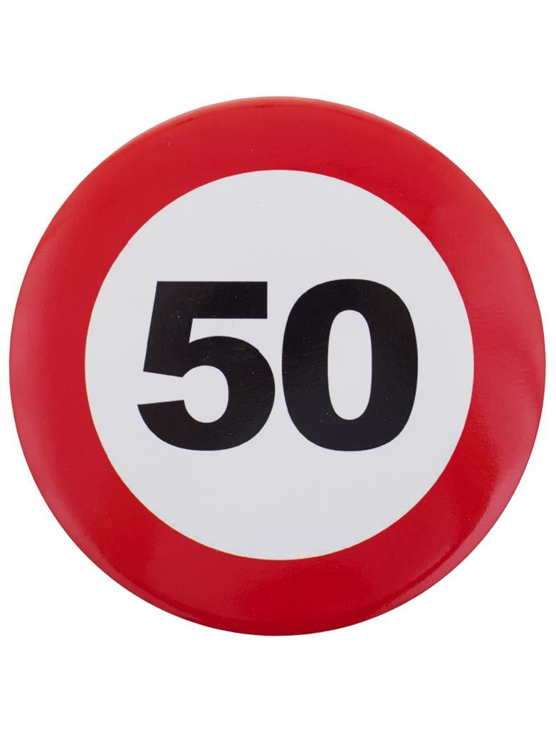 Original 50th birthday button traffic sign for Abraham or Sarah Read more