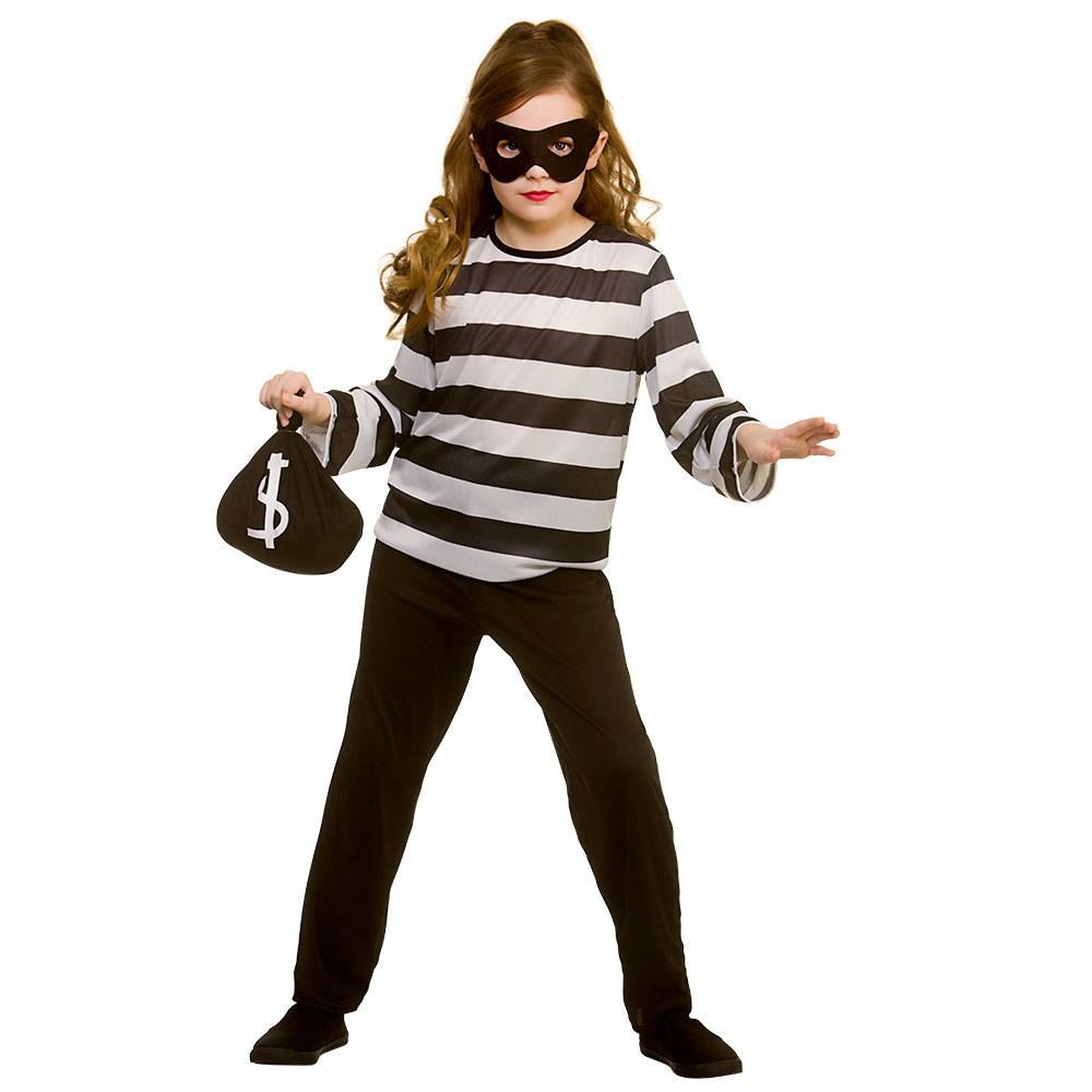 Rough bandit costume for kids includes: striped shirt black pants mask money bag Read more