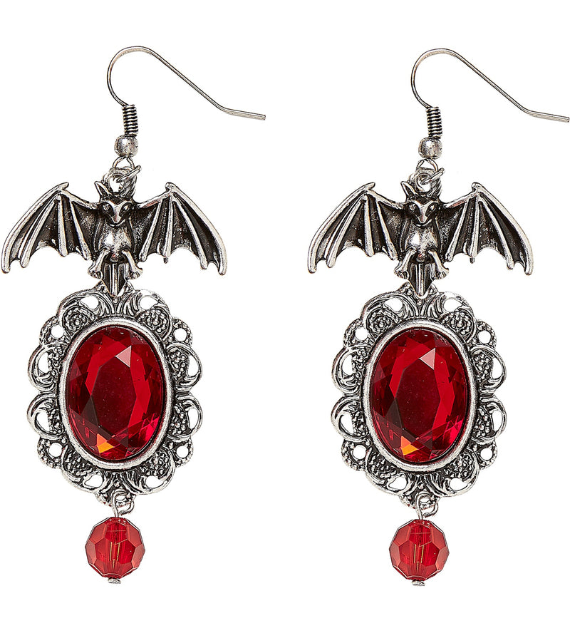Bat earrings with red stone