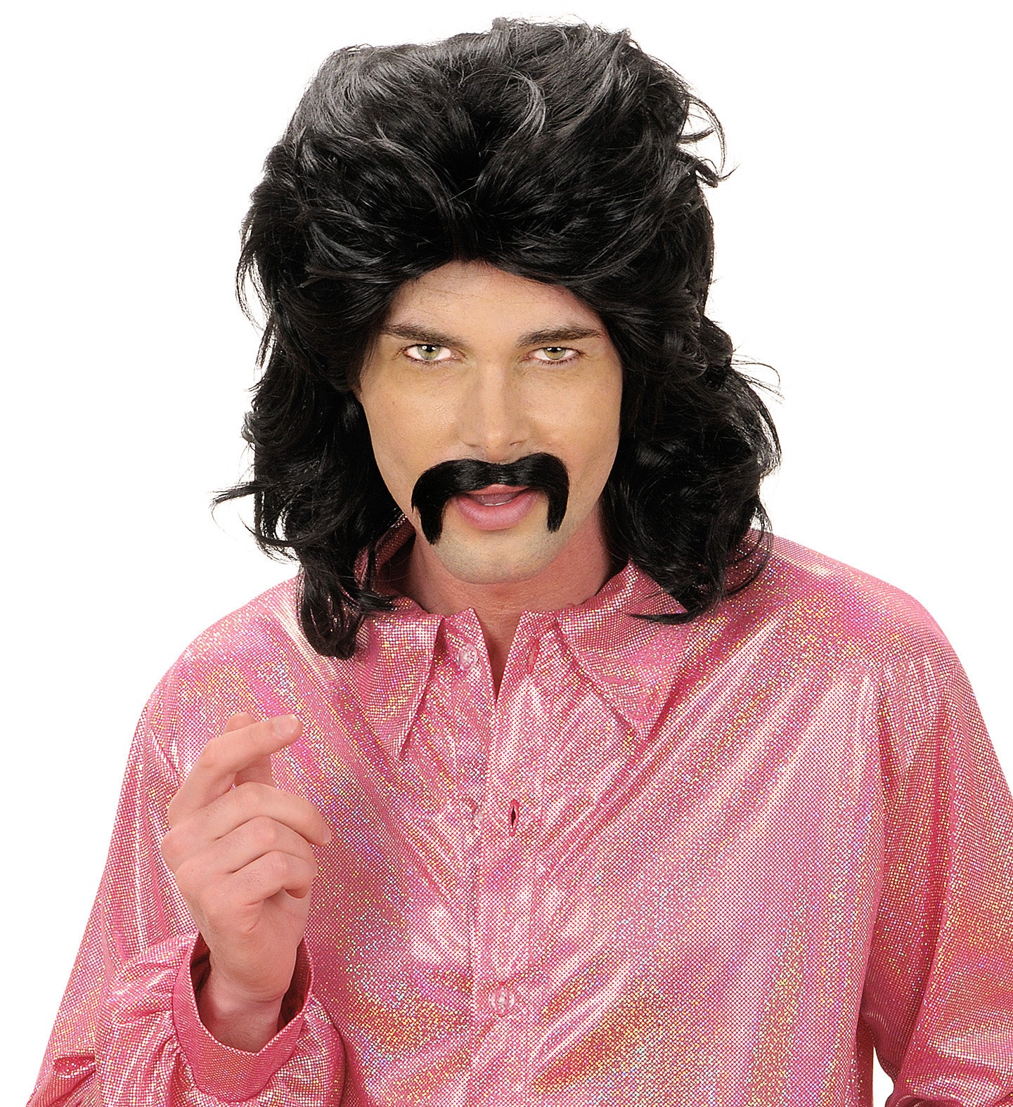 Disco wig seventies man black with mustache