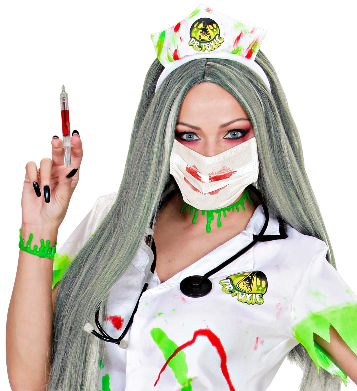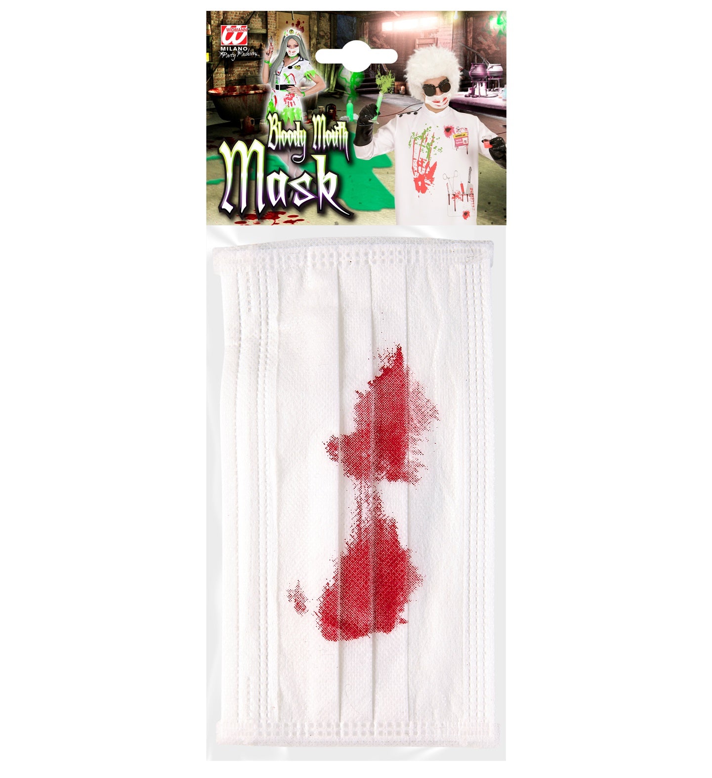 Face mask with blood splatter Bloody face mask for the zombie surgeon or zombie nurse from the party store Read more