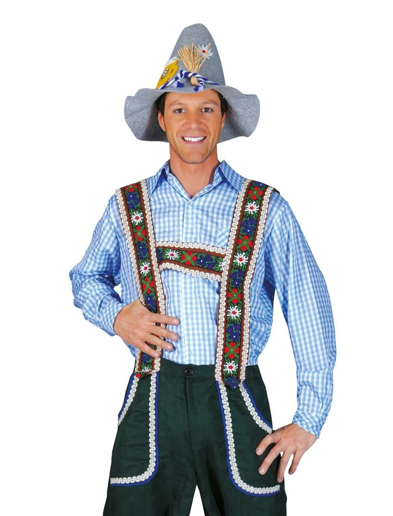 Combine this beautiful Tyrolean blouse with a variety of matching party accessories and let your inner Tyrolean shine. Don't forget that the Tyrolean blouse goes perfectly with our lederhosen from the B601094 and B501093 series, so that your outfit is completely in style.