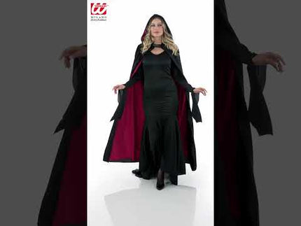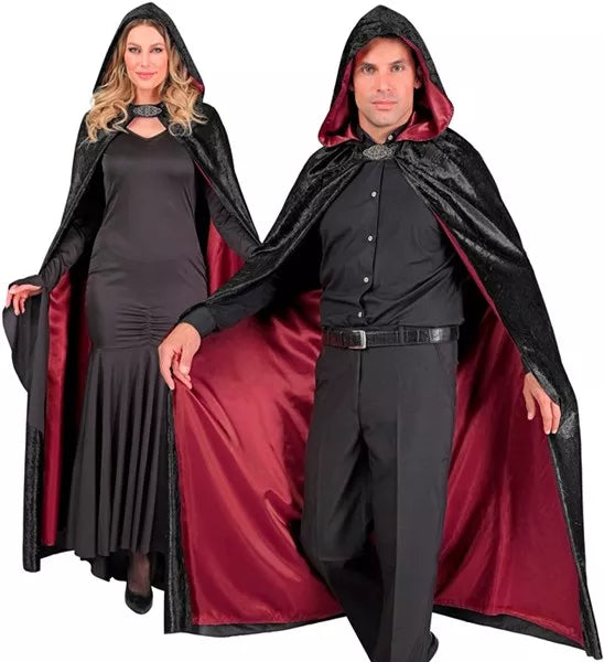 Cape with hood black velvet with red lining 140cm Maud