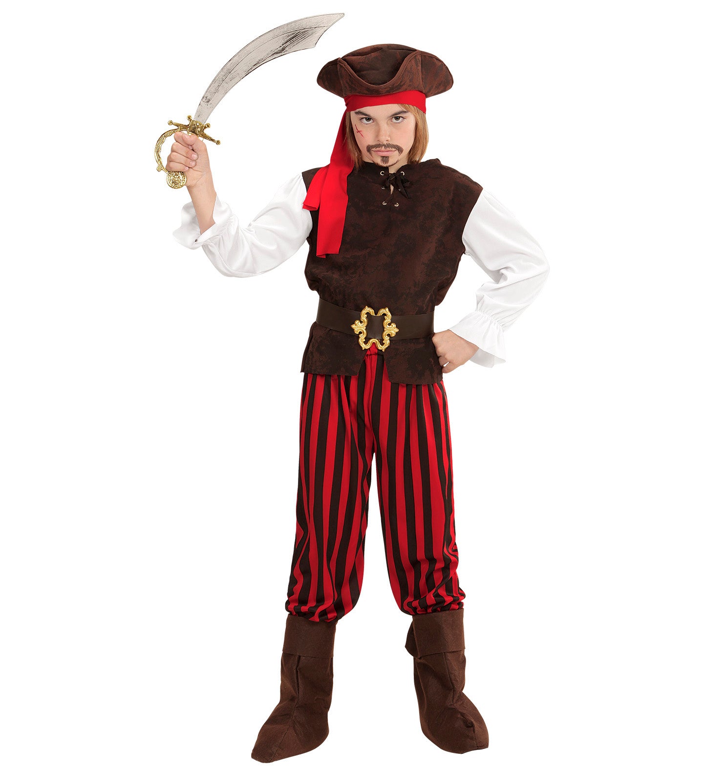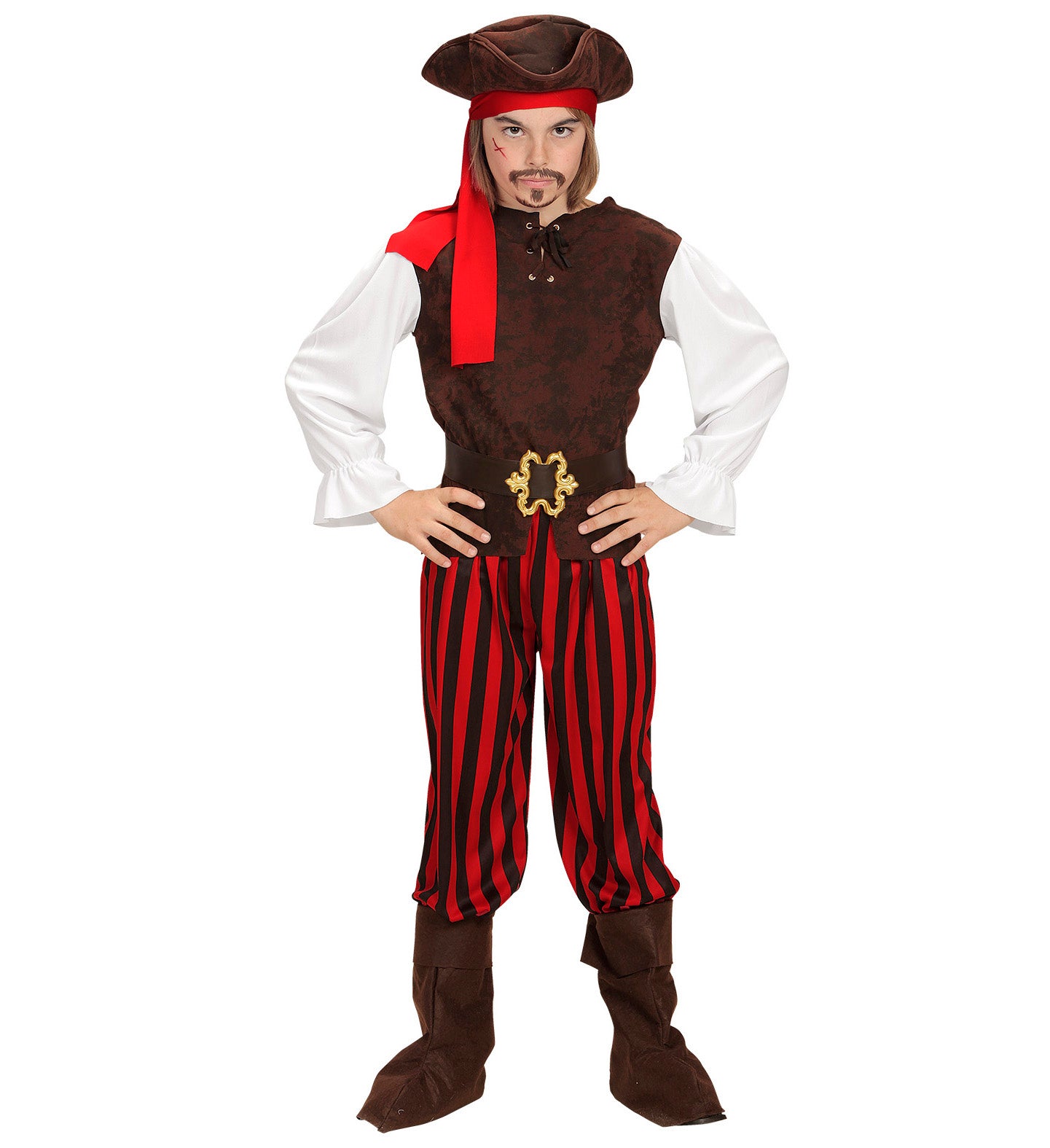 Caribbean pirate suit Barry consists of: vest with shirt pair of trousers belt shoe covers headband hat Read more