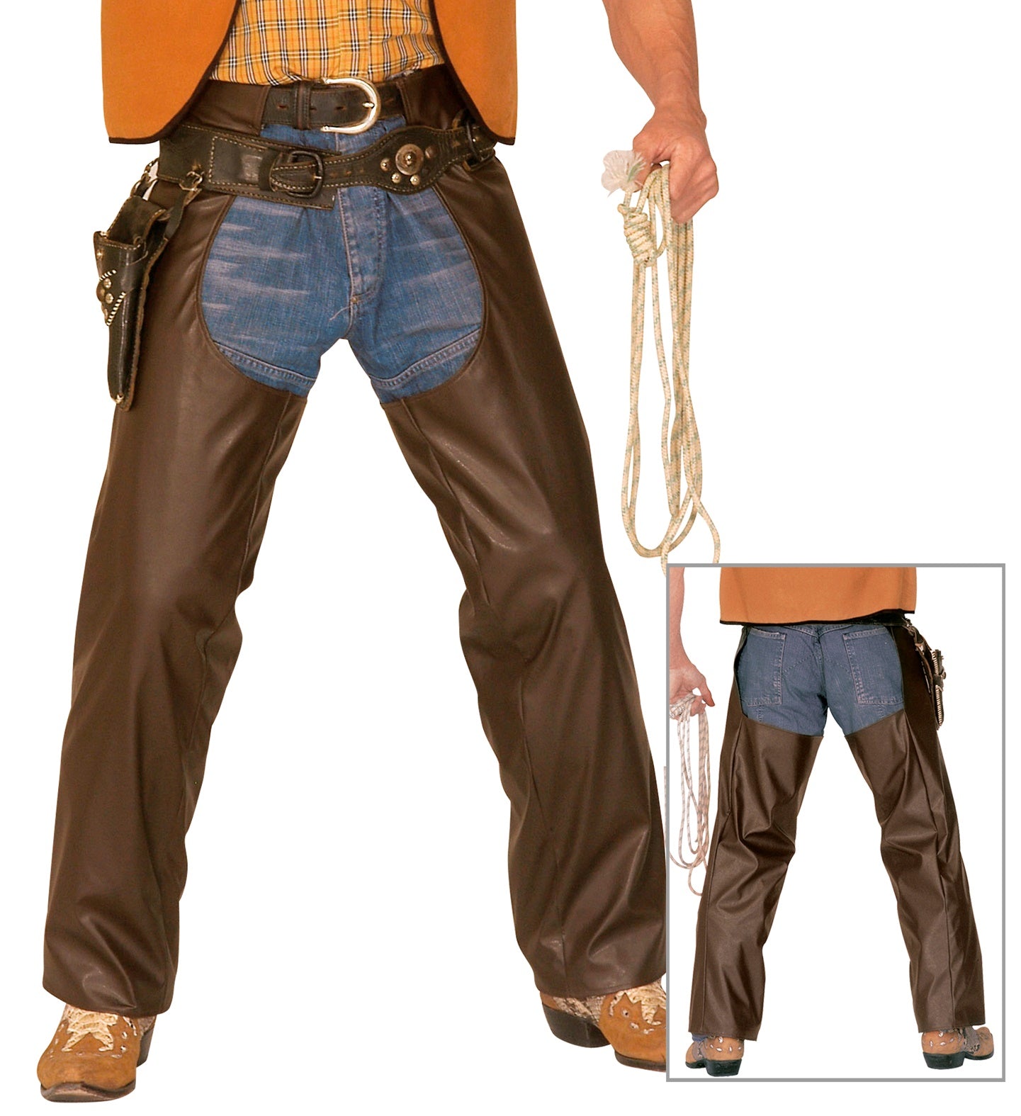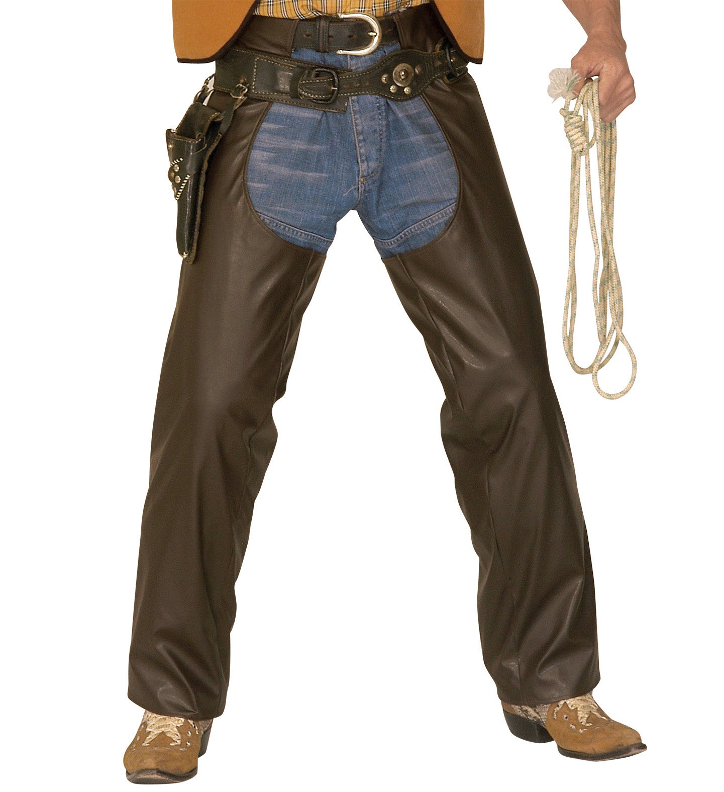 Leather look cowboy pants with brown chaps