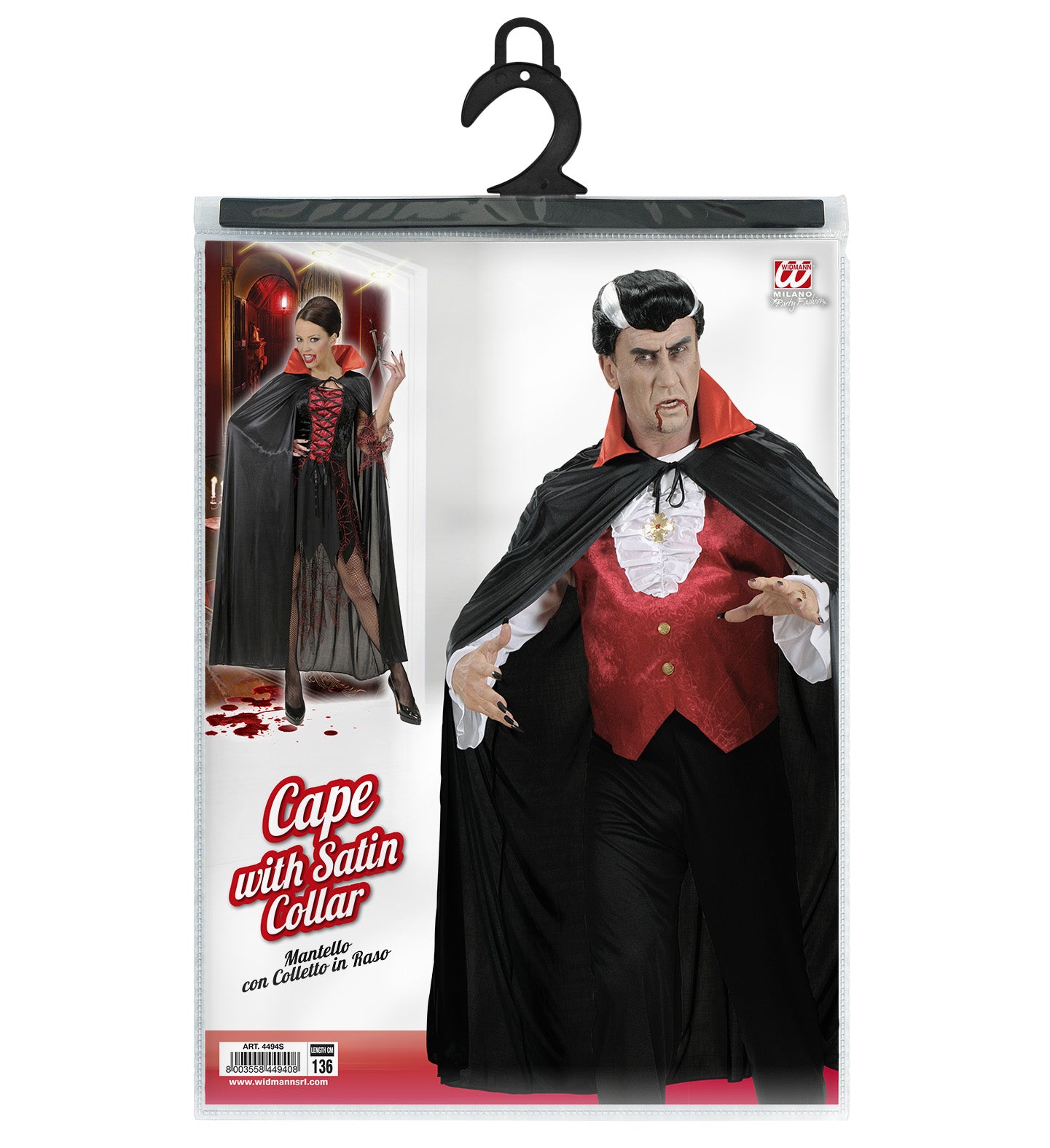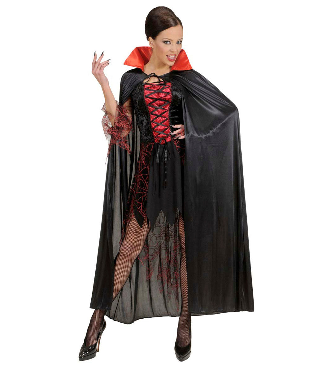Vampire cape black with red collar adults