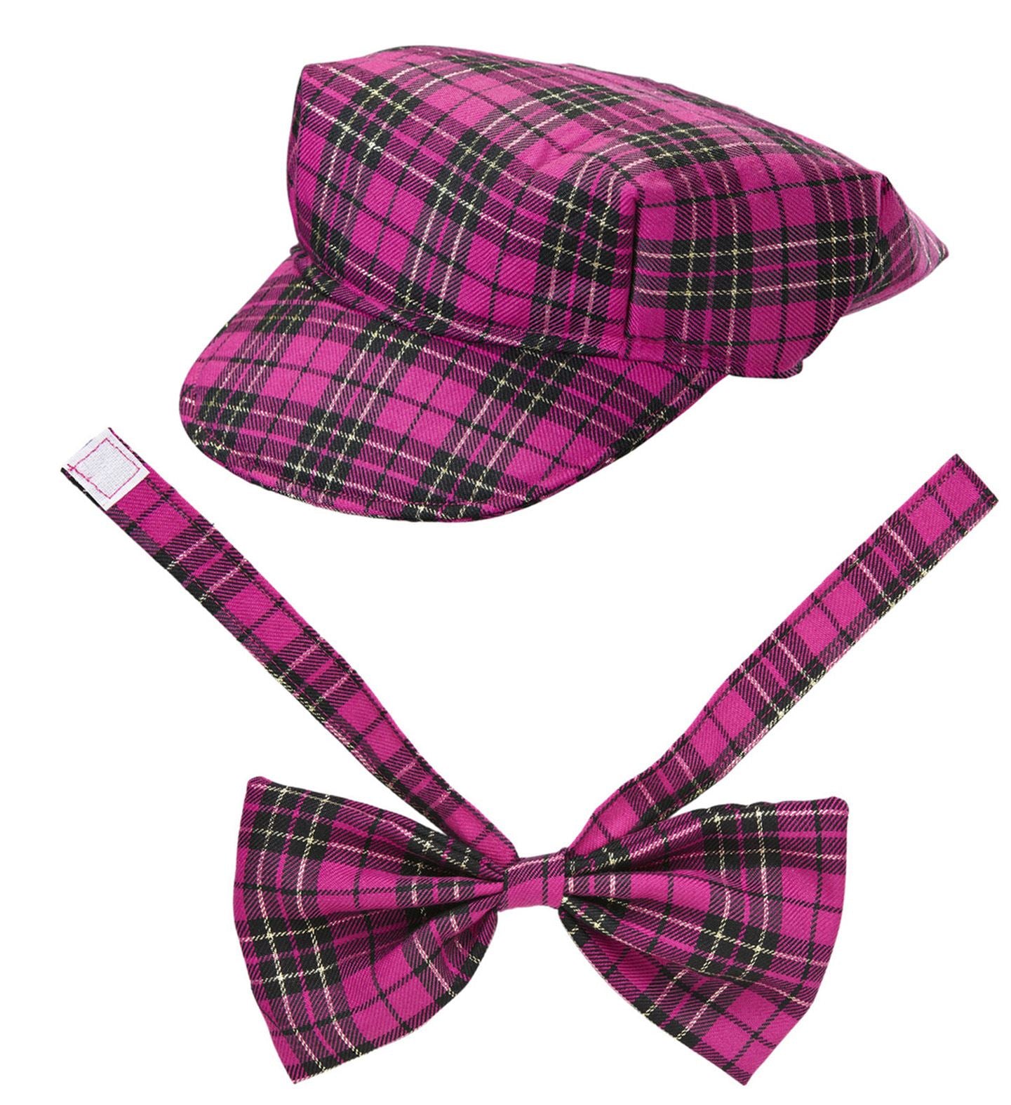 Pink checked golf cap with bow for carnival This Scottish checked golf cap with matching bow tie is especially for... Read more