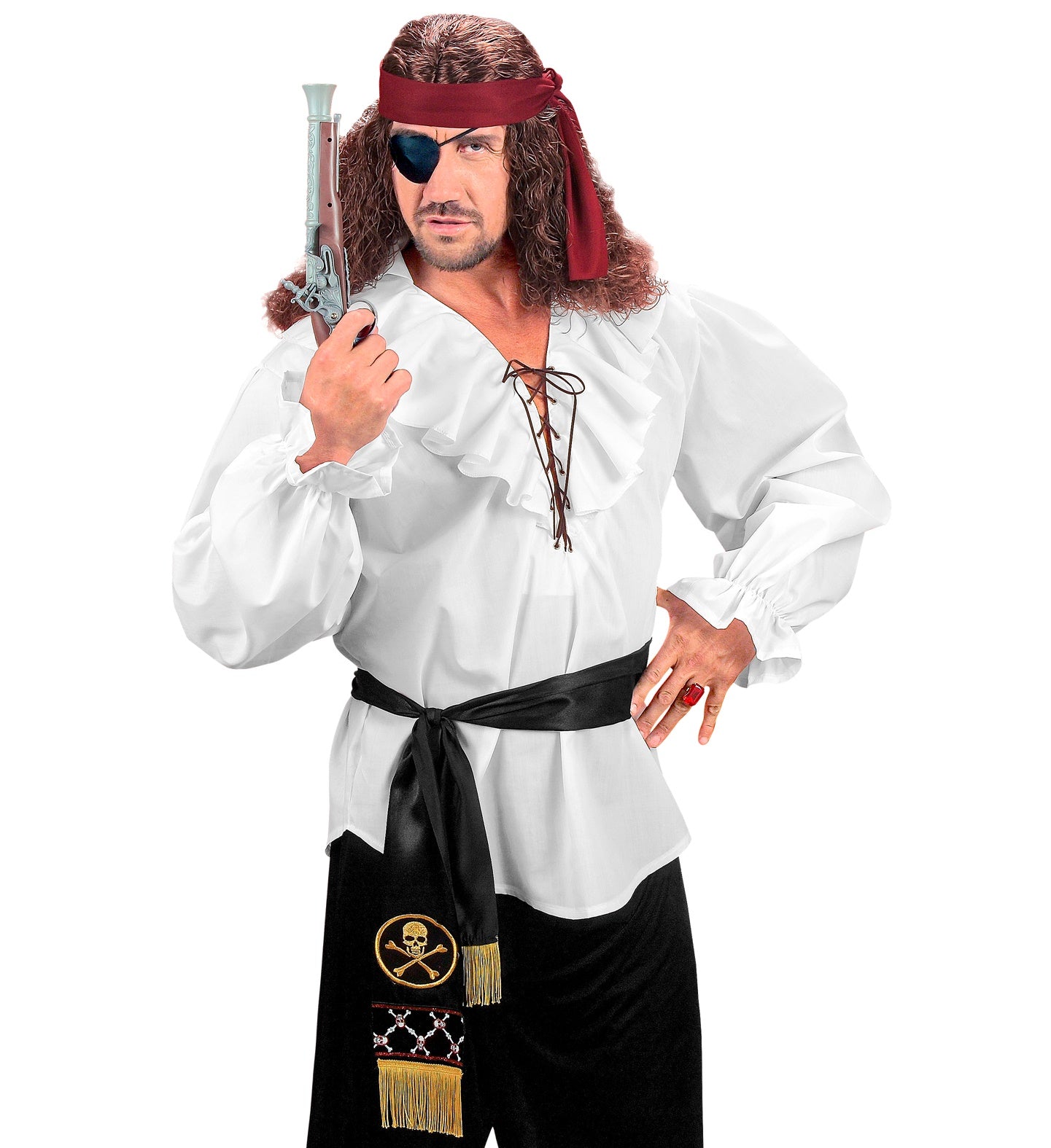 Beautiful pirate sash for your pirate costume Beautiful black pirate sash with a gold-colored printed skull. This pirate sash makes... Read more