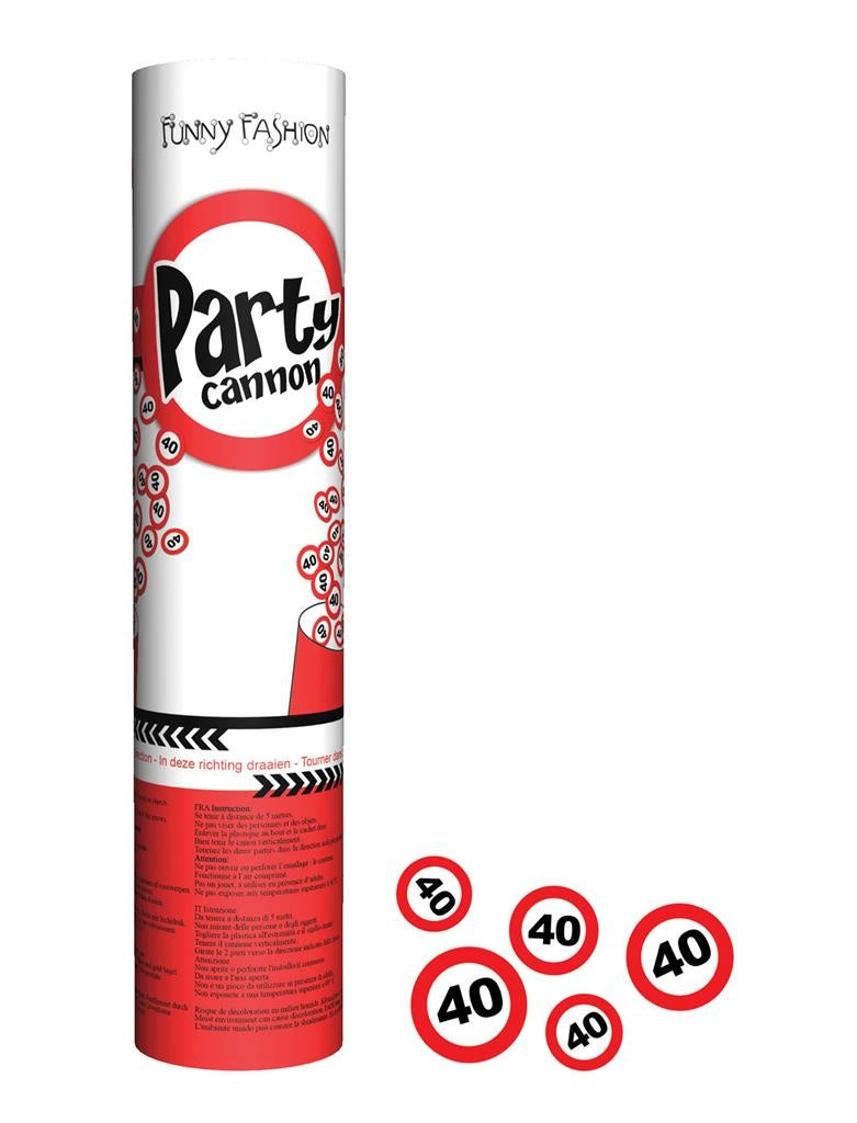 Nice confetti cannon 20cm with traffic signs with the number 40 printed on it Read more