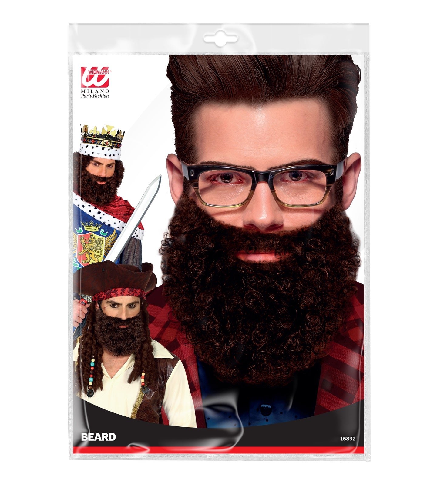 Curly beard with mustache Leonardo, brown