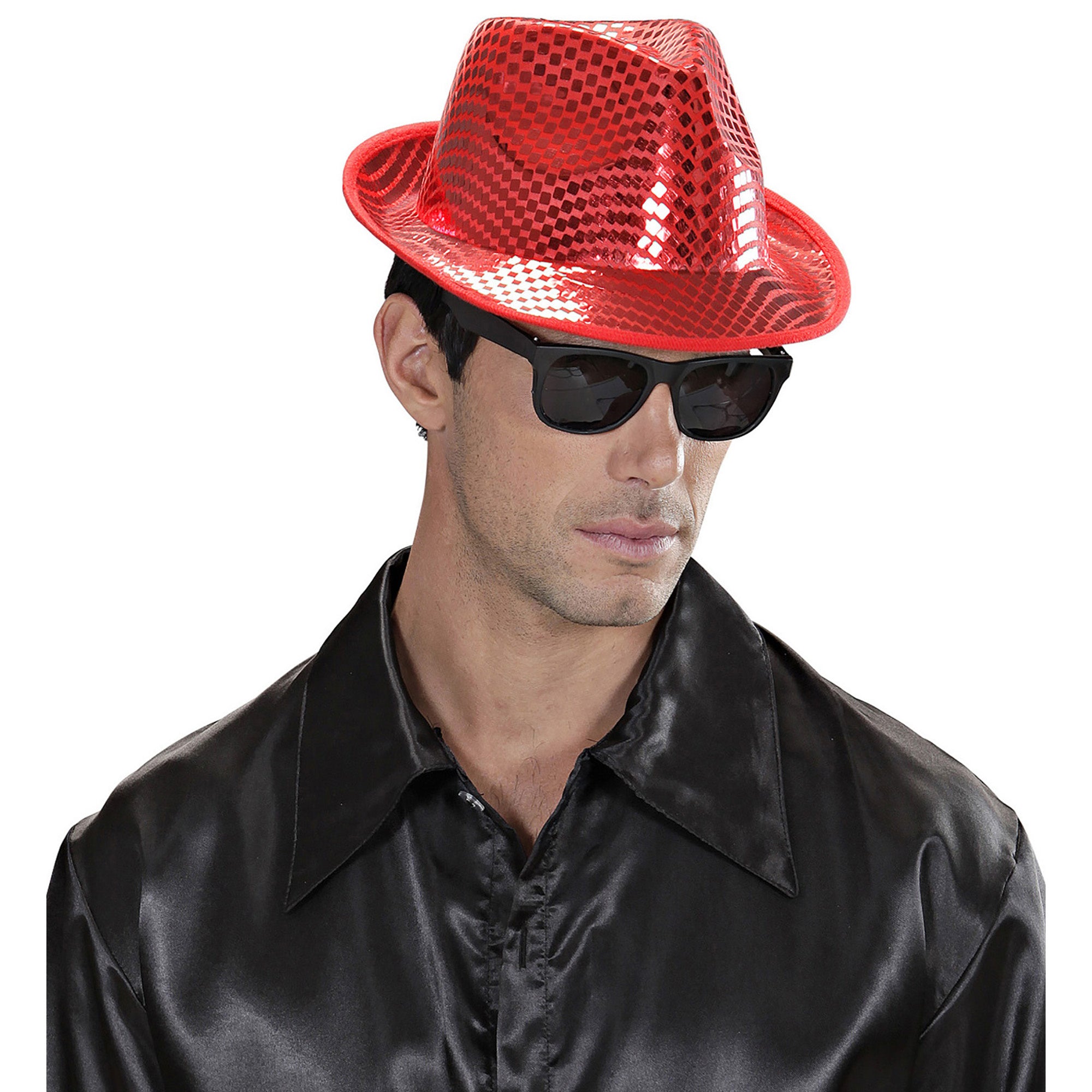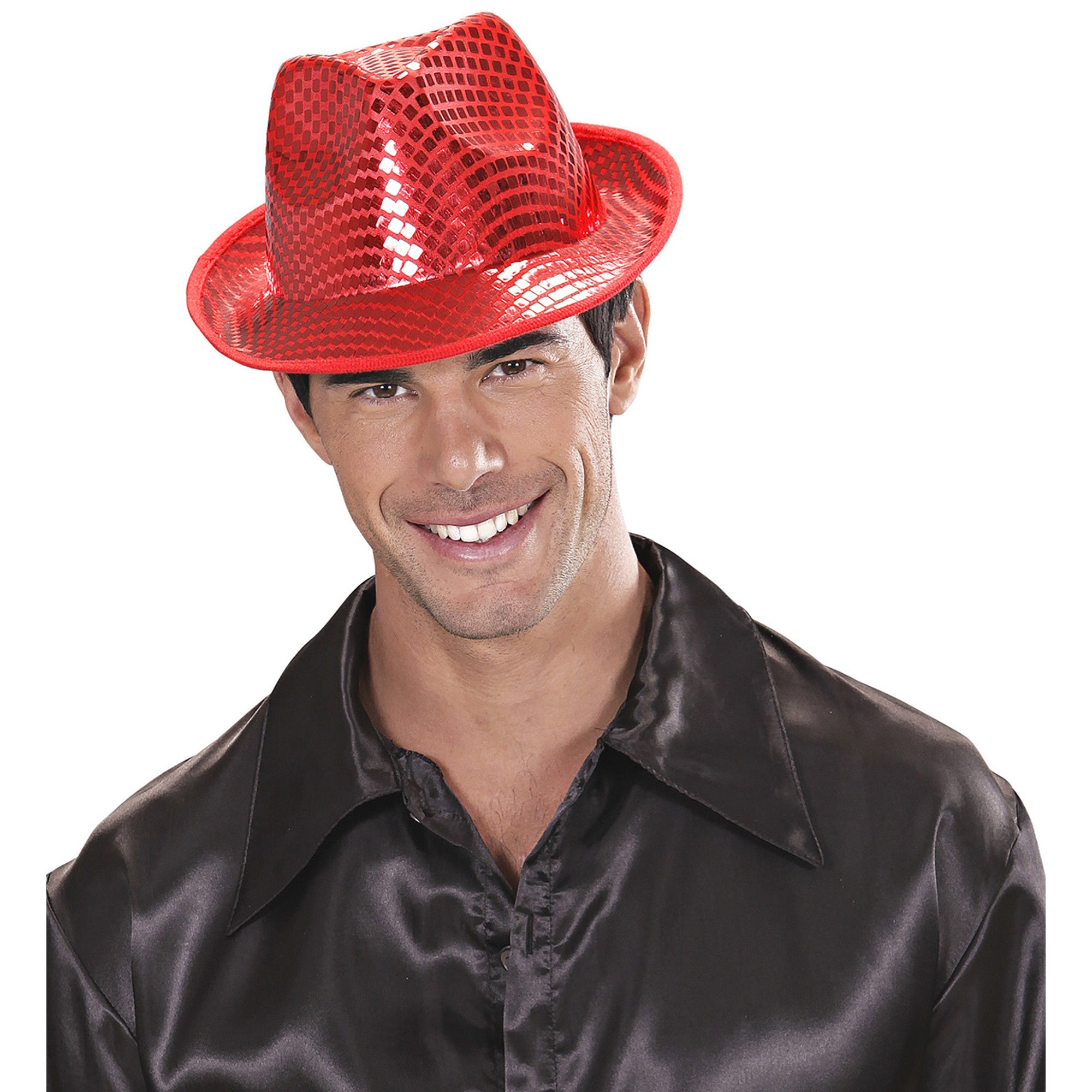 Steal the show with this red fedora hat full of sparkling square sequins! Perfect for any party, from carnival to a night out.