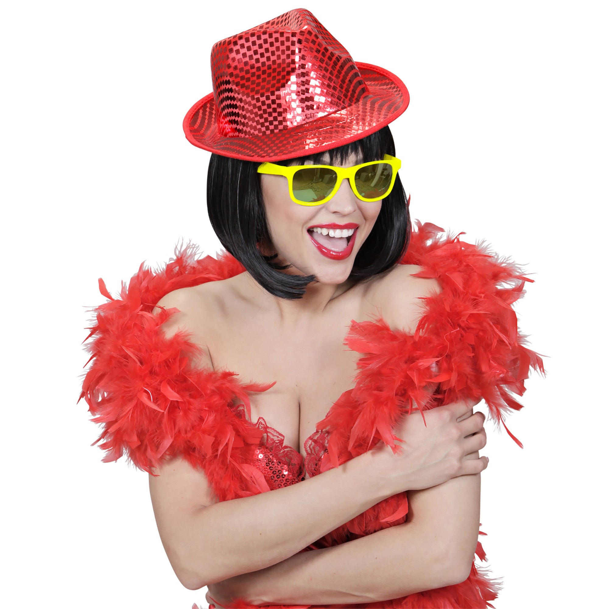 Steal the show with this red fedora hat full of sparkling square sequins! Perfect for any party, from carnival to... Read more