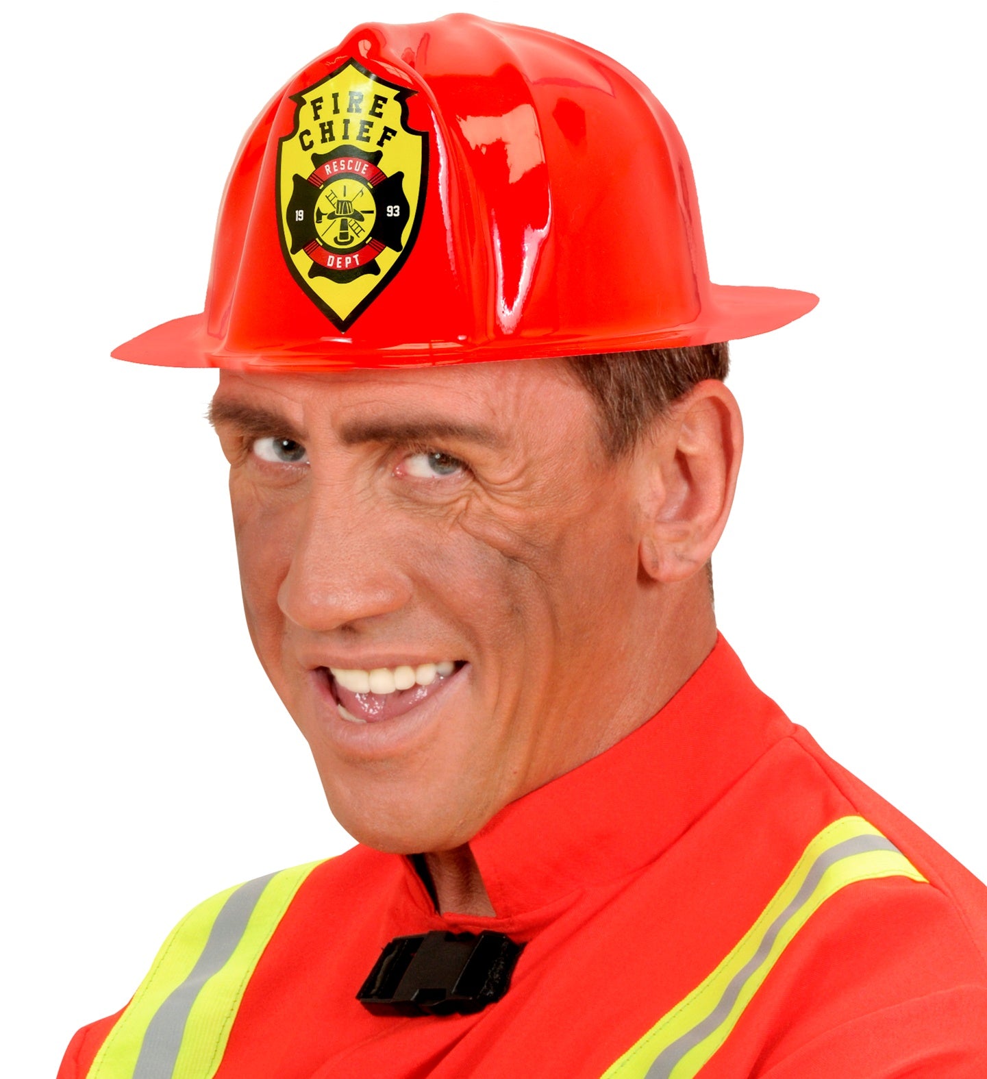 Red fire helmet for adults This red fire helmet with badge for adults is a fun accessory for our firefighter... Read more