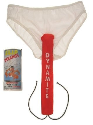 Dynamite underwear with fuse in the crotch for explosive carnival and bachelor parties. These spicy underwear provide the necessary surprise when you drop your pants at the right moment and show your new explosive underwear to your lover.