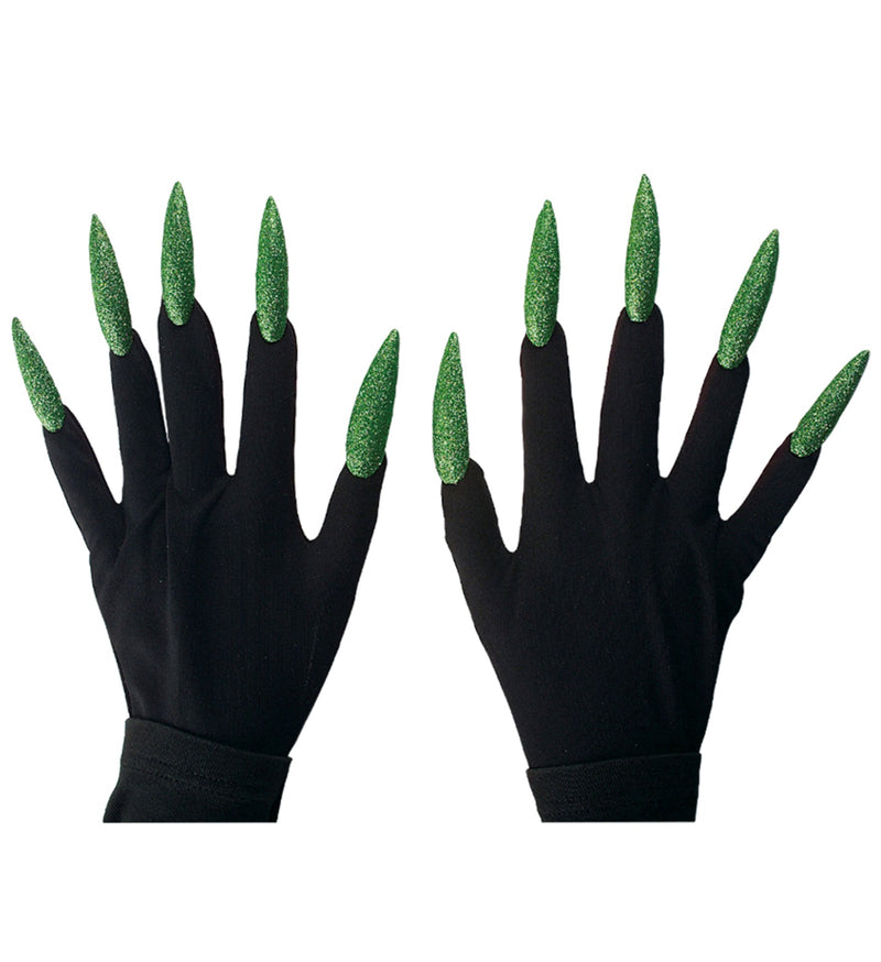 Witches gloves black with green nails