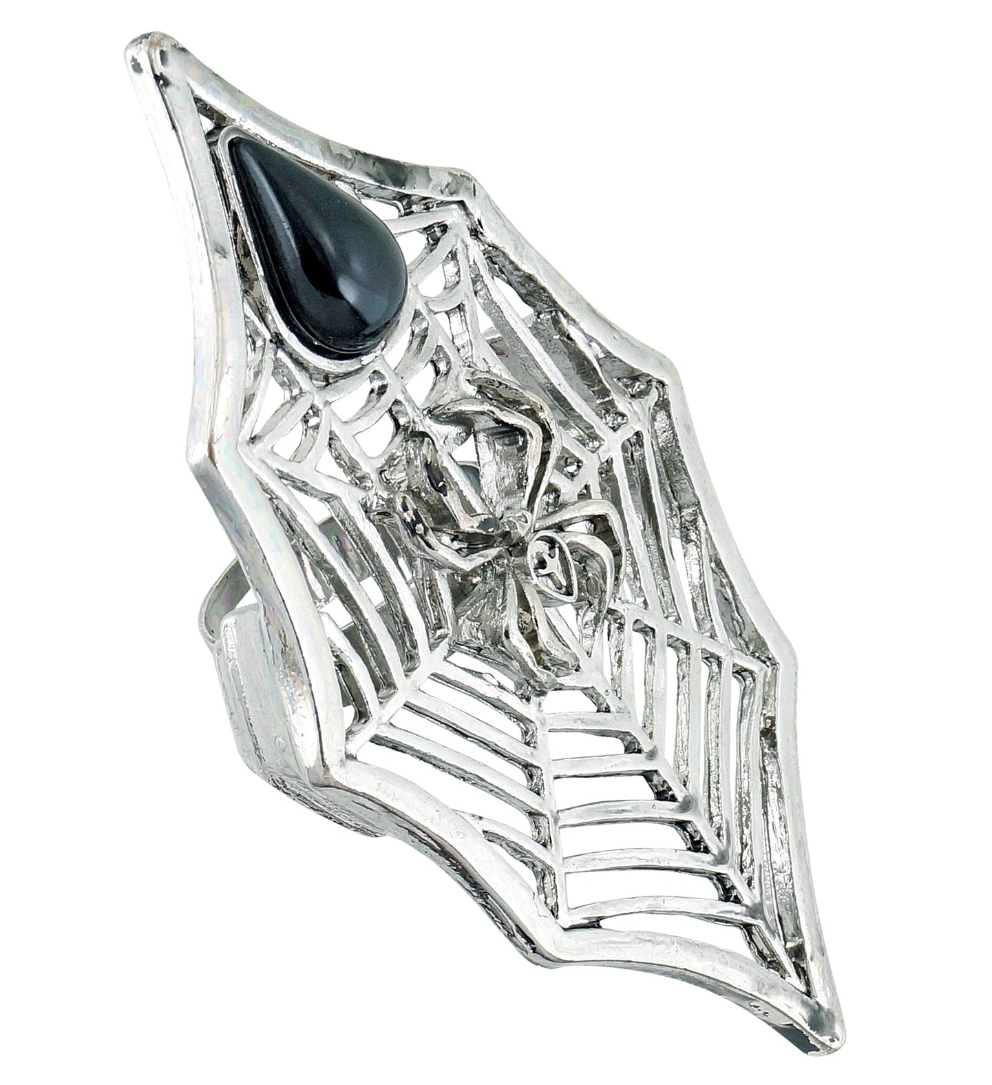 Gothic Ring Spider + Web With Black Gemstone