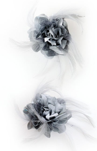 Hair clip with silver silk flower