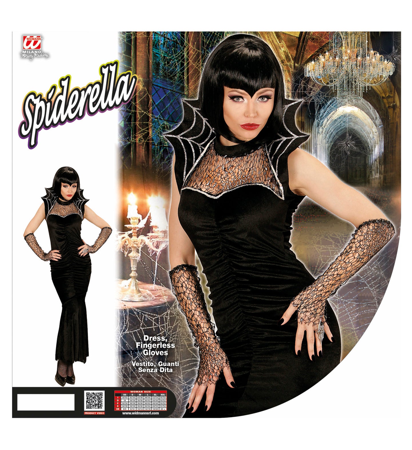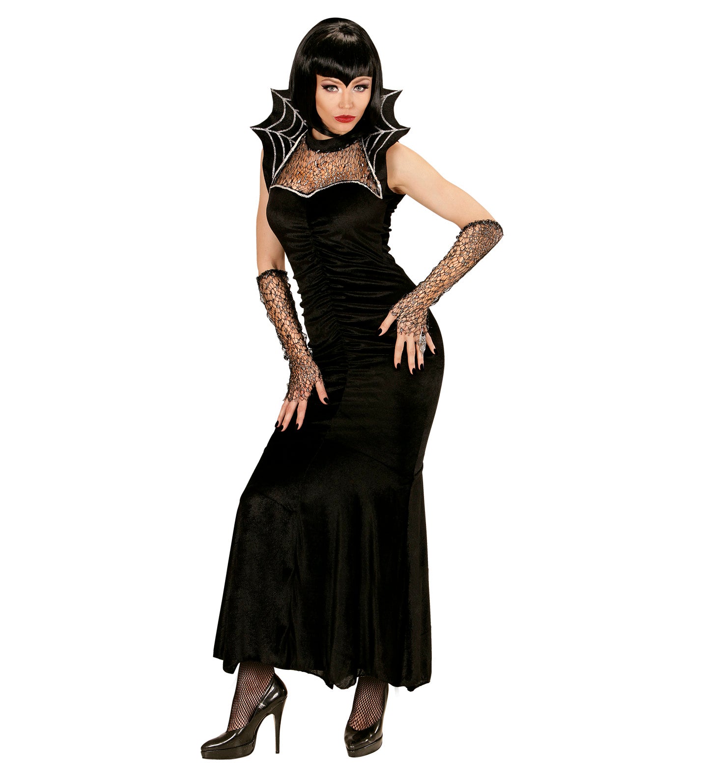 This Spiderella witch dress includes: Dress Collar fingerless lace gloves Read more