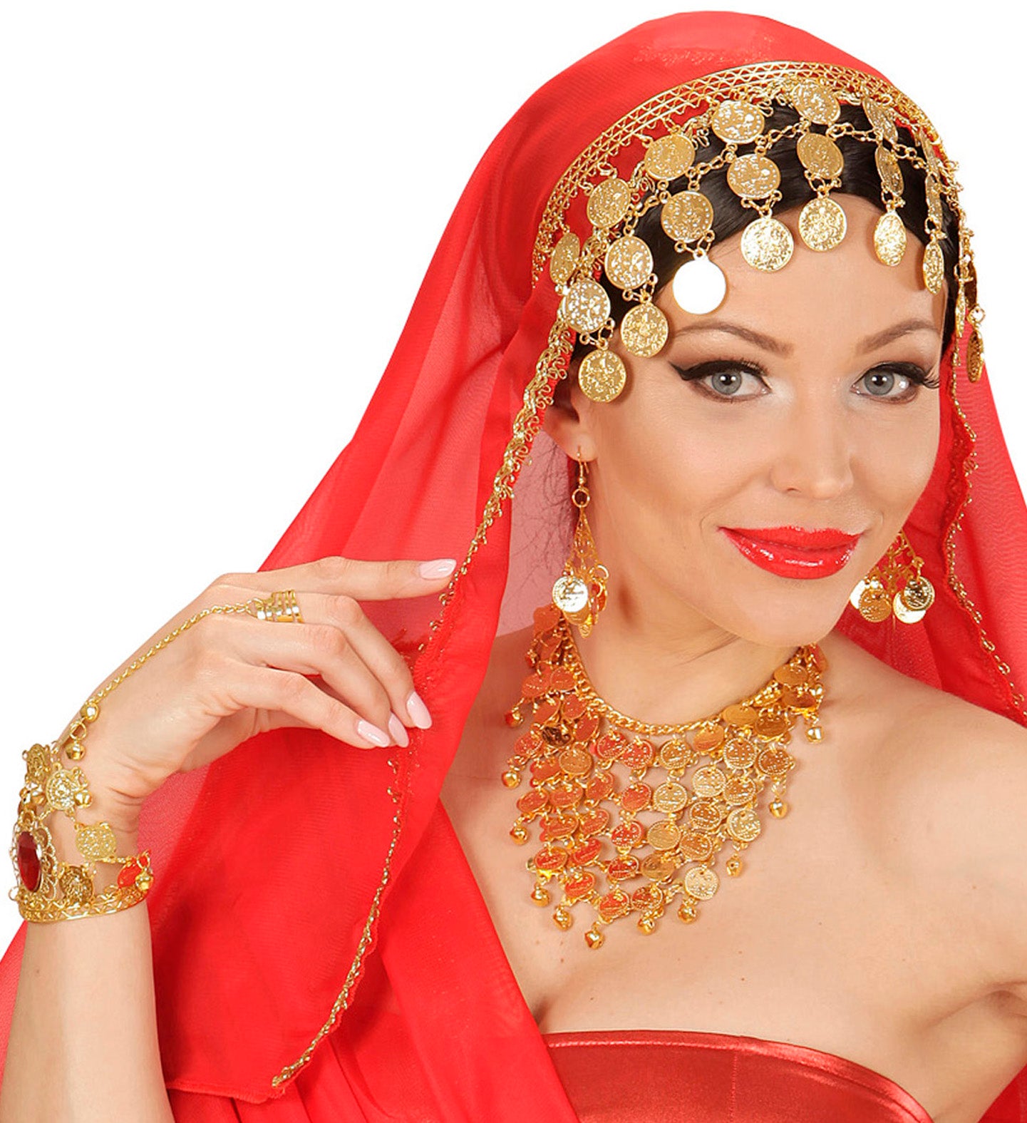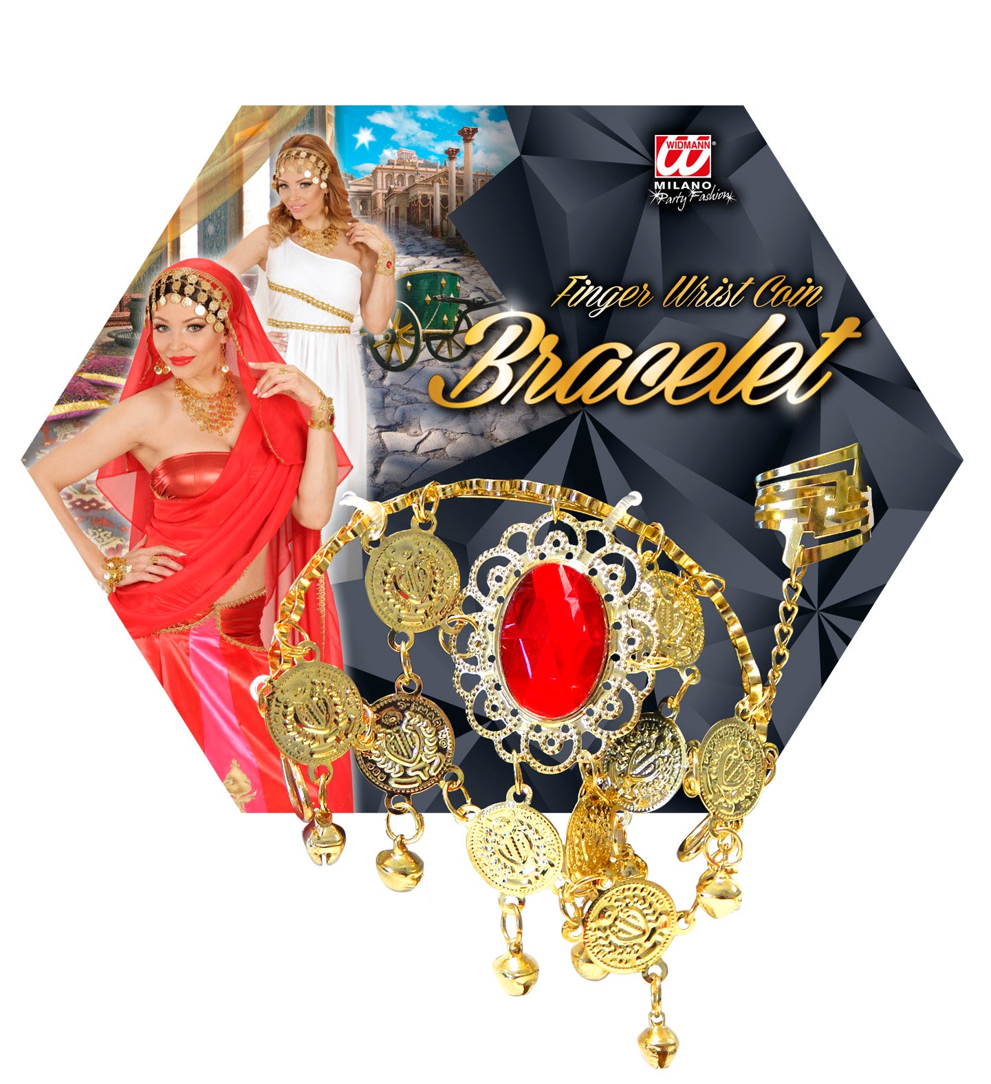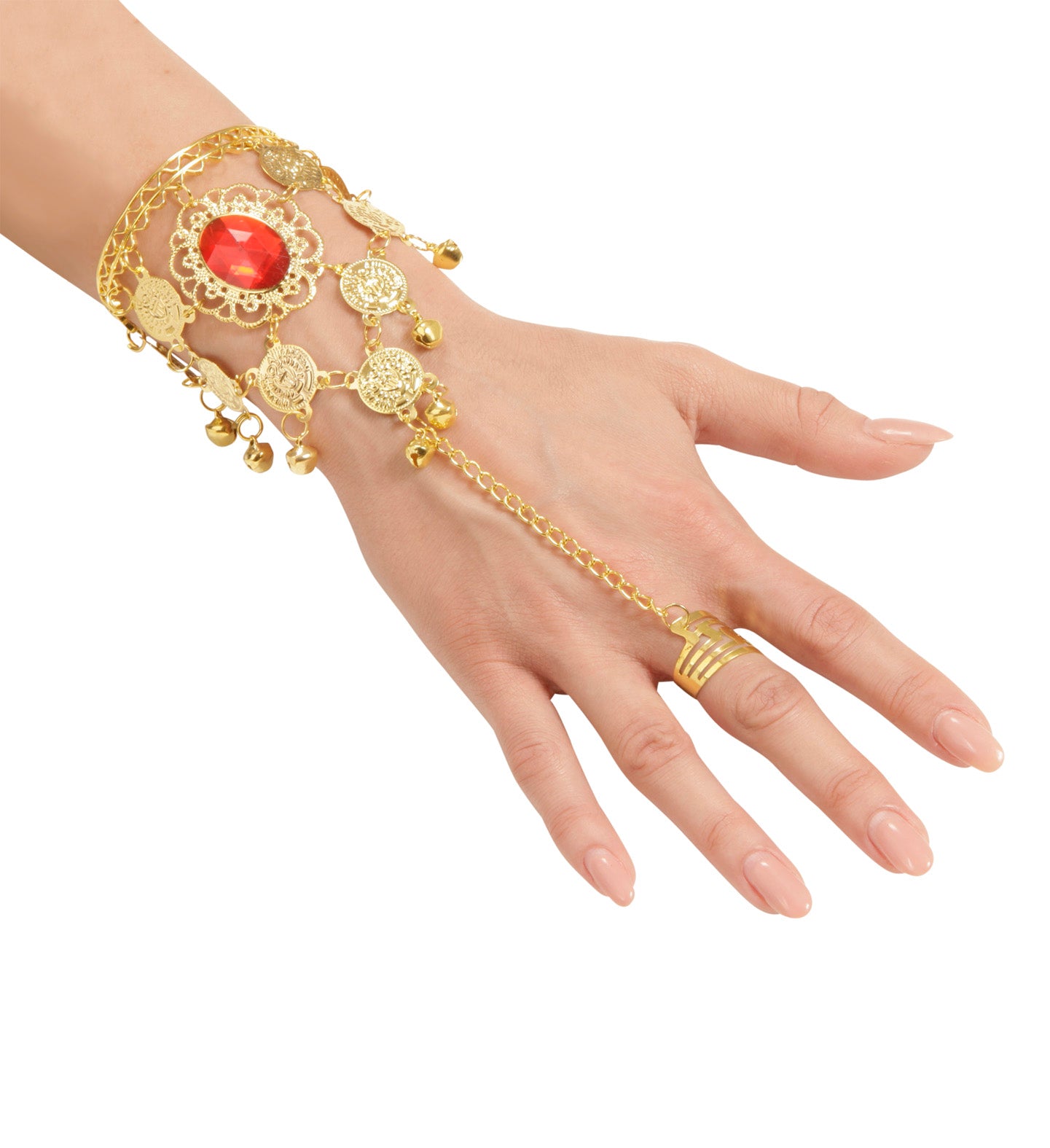 Hand jewelry with chain and fingering of fake gold and gemstones Read more