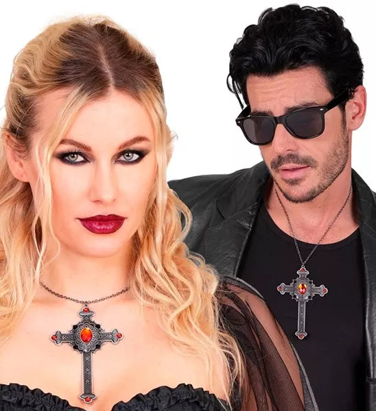 Necklace cross with red jewels Lotte