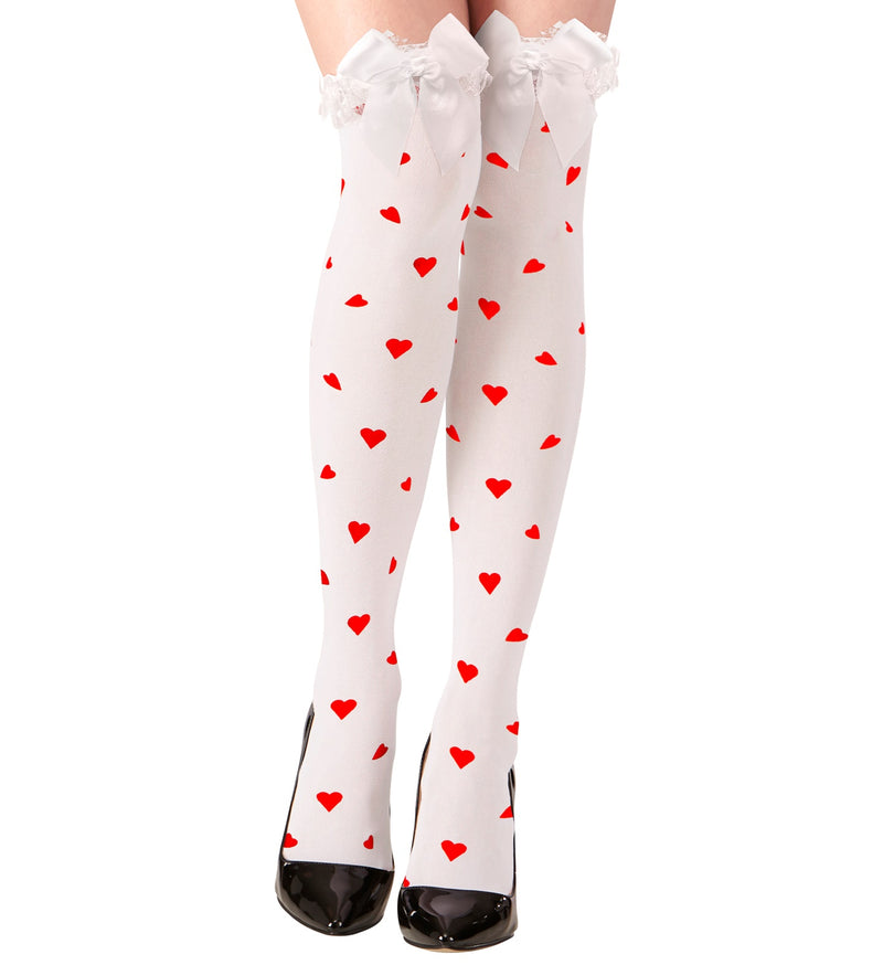 Knee-high socks white with hearts
