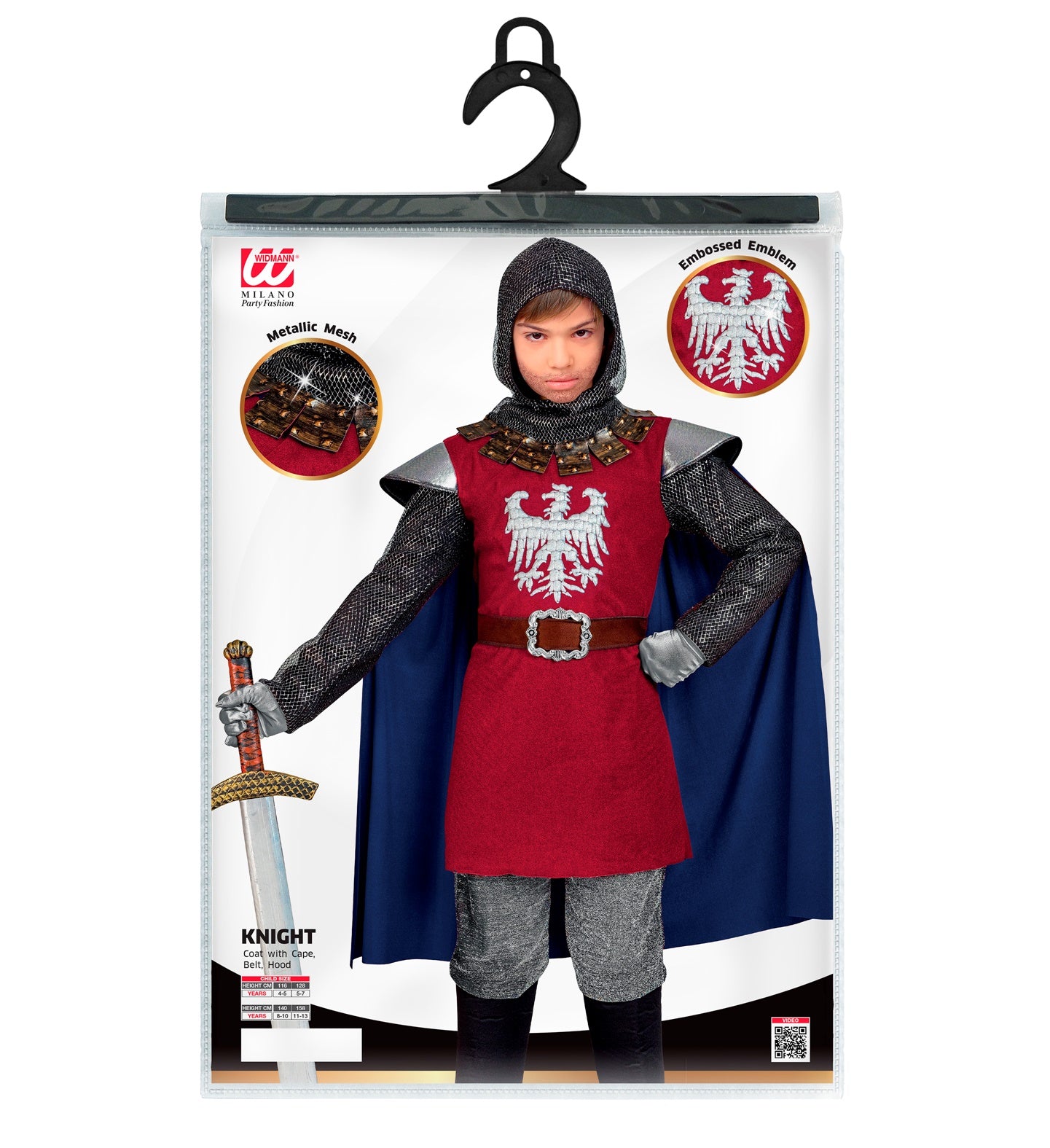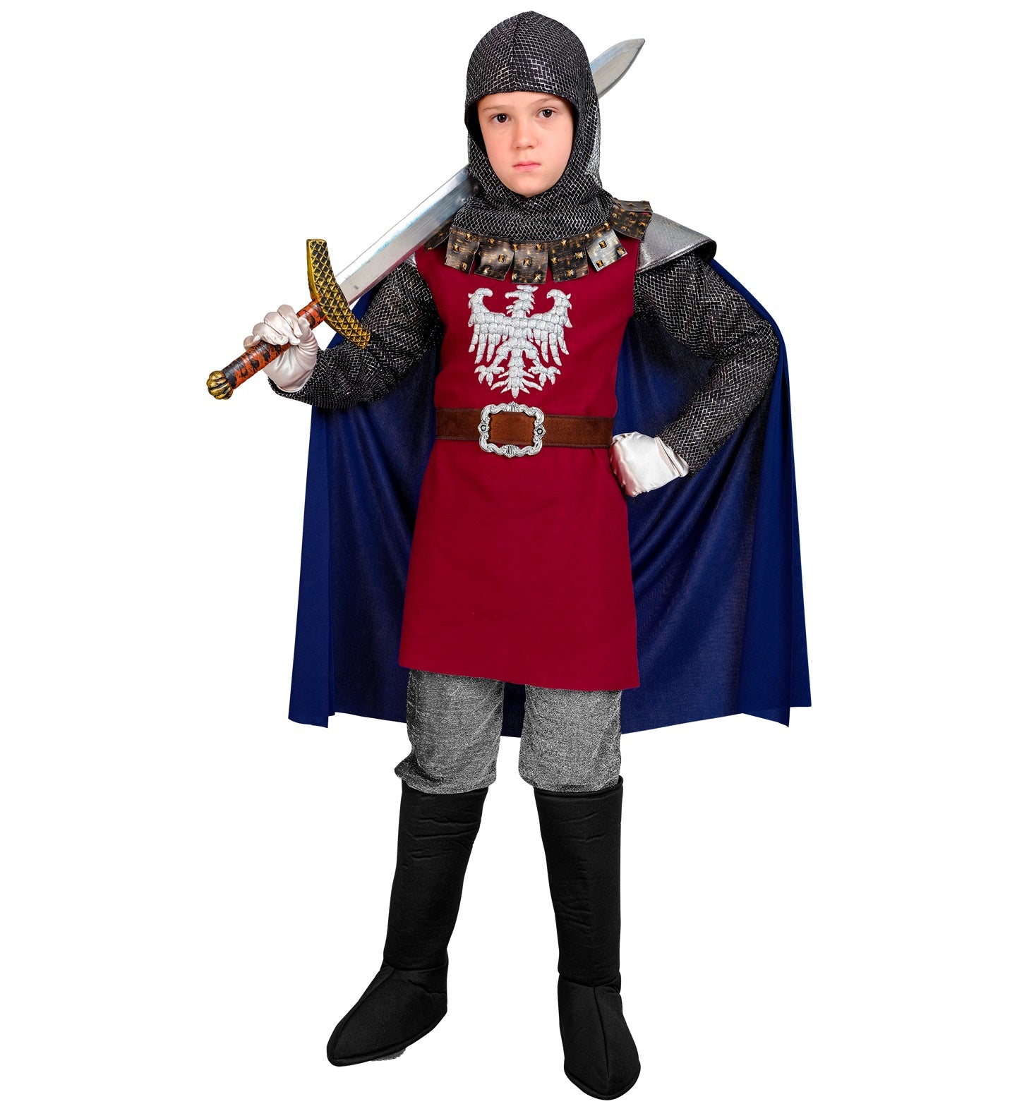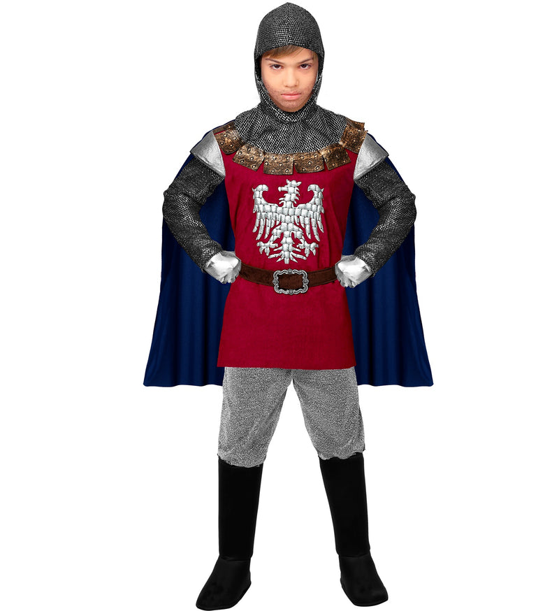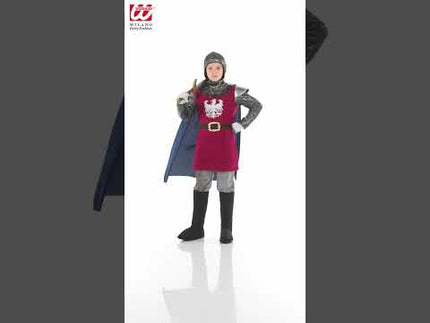 Cool knight costume for children in red for the Middle Ages includes: coat, cape, belt and headgear. Read more