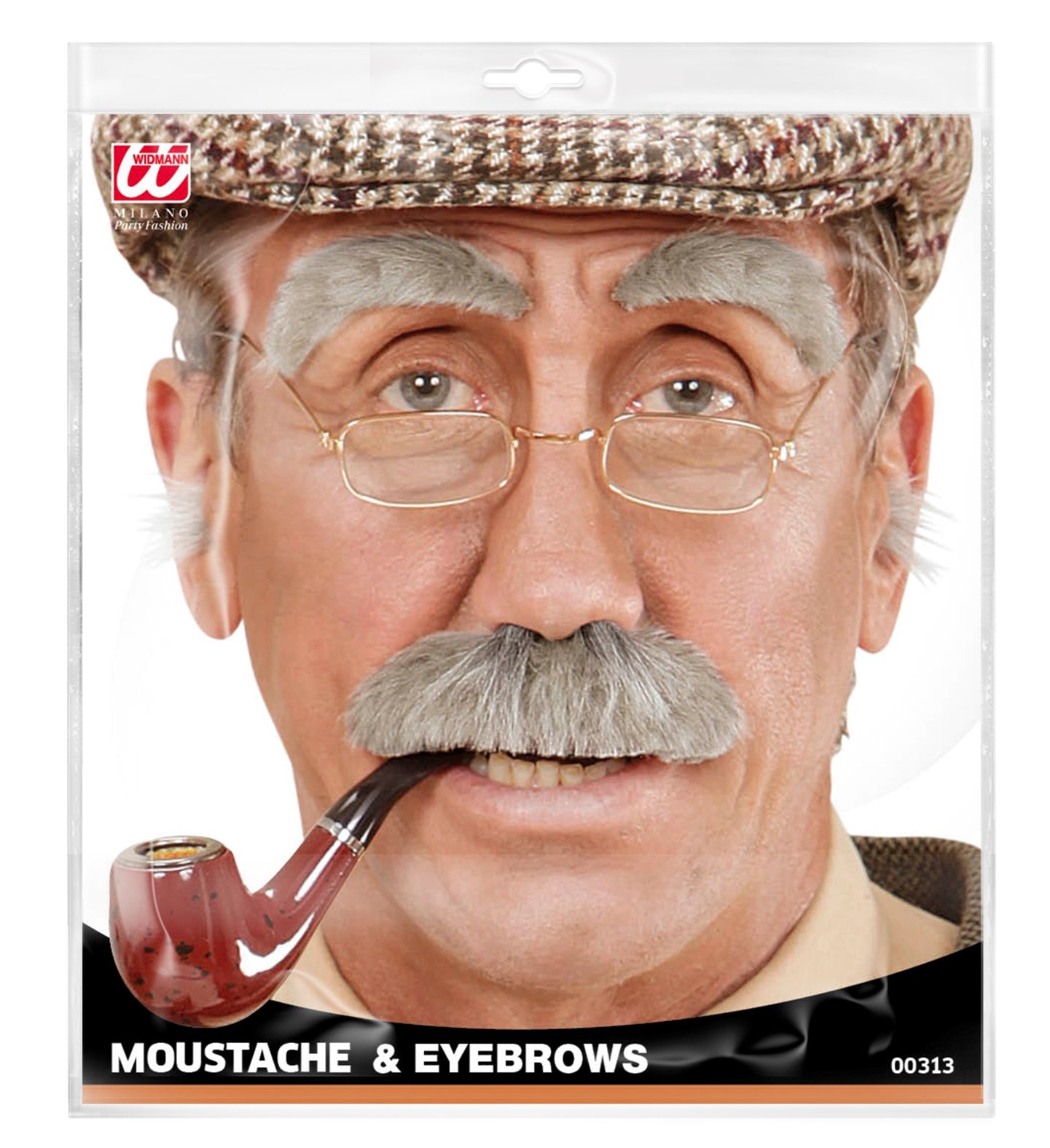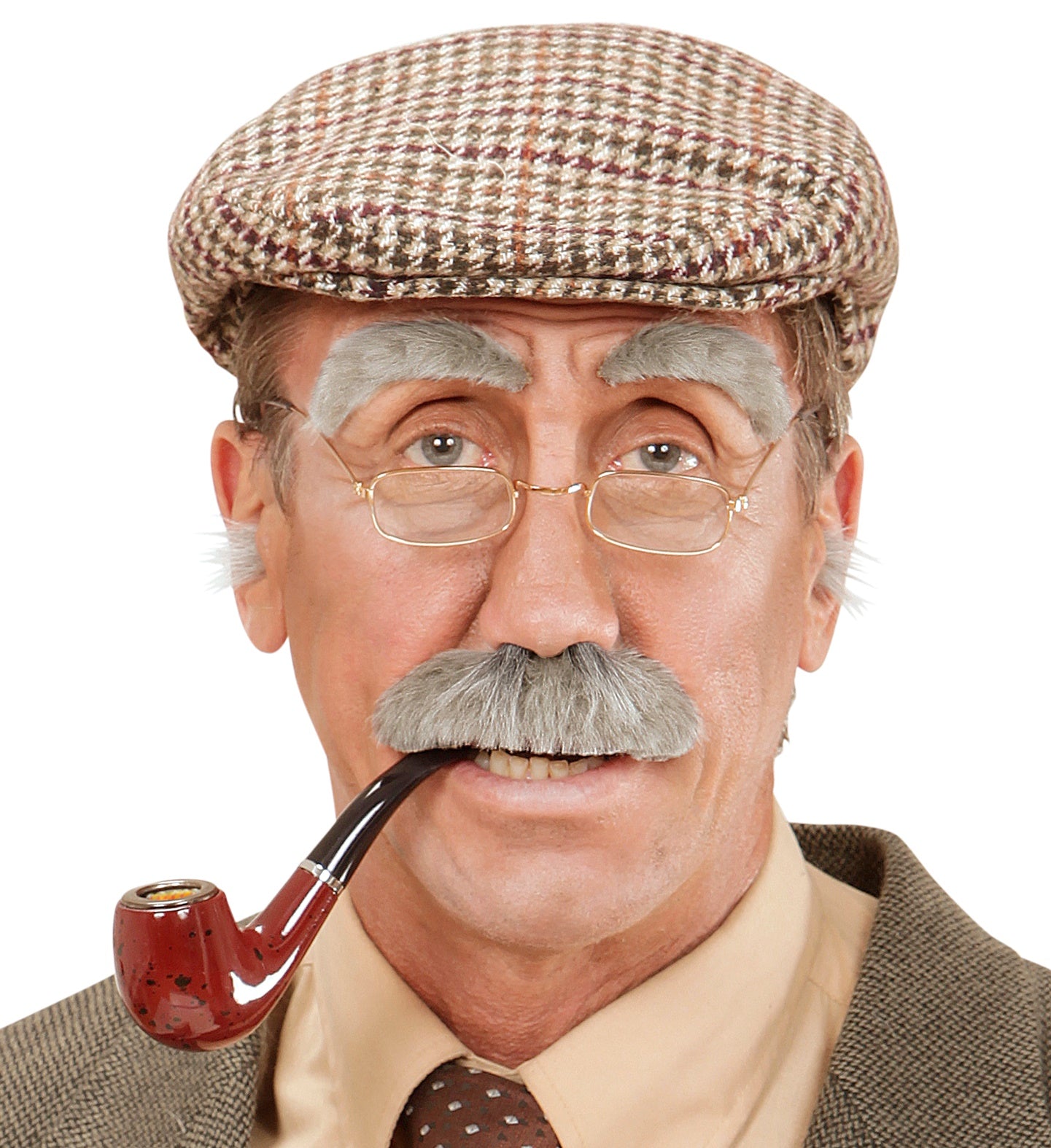 Fake mustache and eyebrows gray