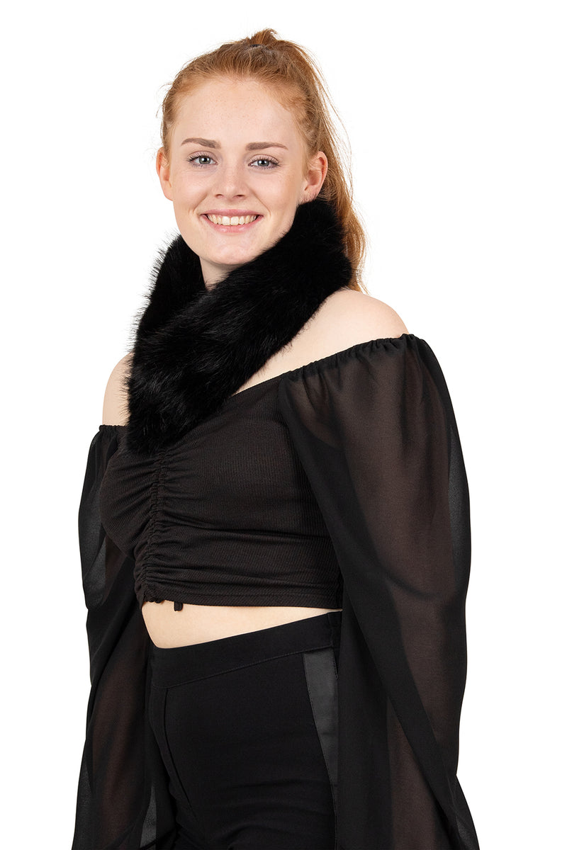 Faux fur scarf black with clip