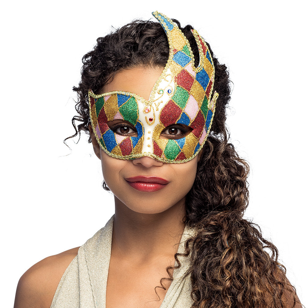 Add a touch of mystery to your carnival outfit with the Venice Jester Eye Mask. The vibrant rainbow colors will make you stand out, while the elegant design will give you a sophisticated look. This mask is not only a feast for the eyes, but also comfortable to wear thanks to the high-quality materials. Whether you're exploring the streets of Venice or attending a local carnival party, this mask is your ticket to an unforgettable experience.