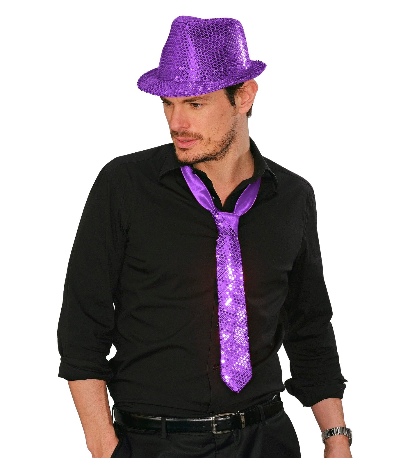 Glitter tie purple sequins
