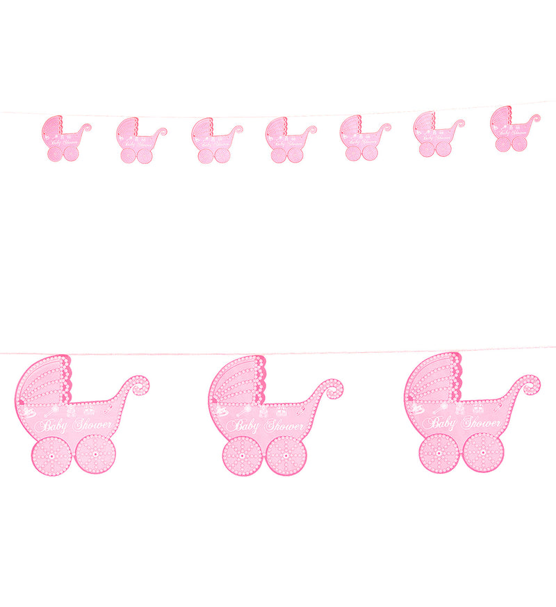 Pink garland with prams for a birth girl or baby shower Read more