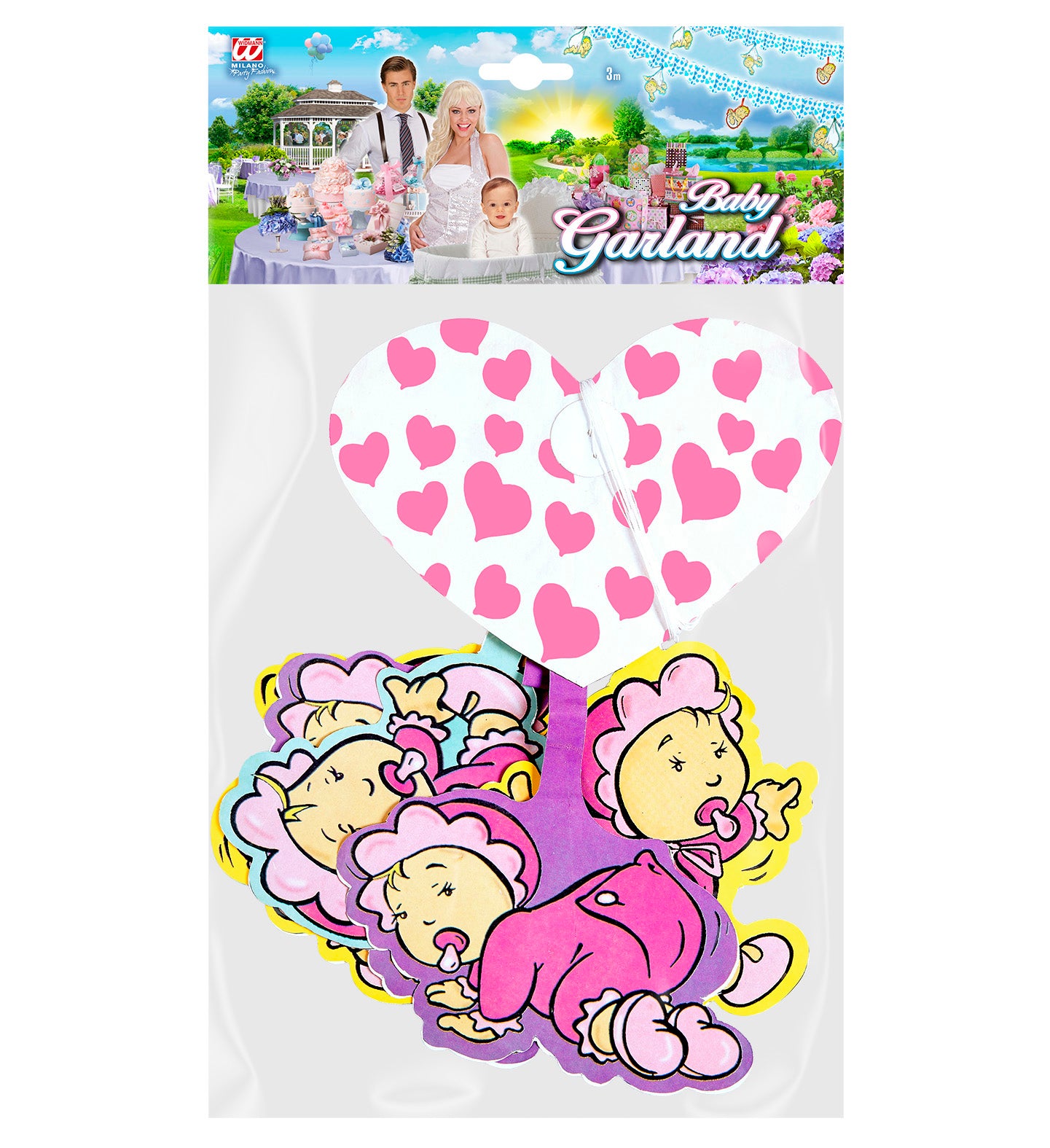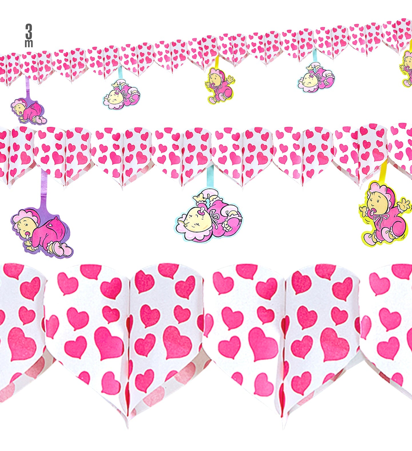 Pink heart garlands with babies for birth party or baby shower 3mtr. Read more
